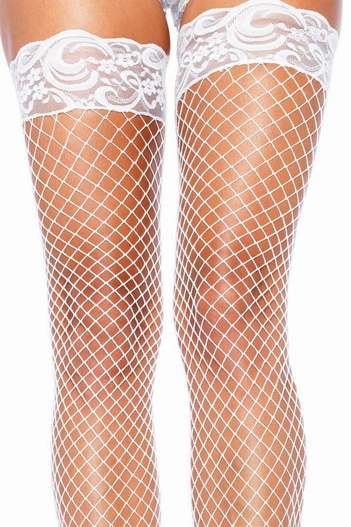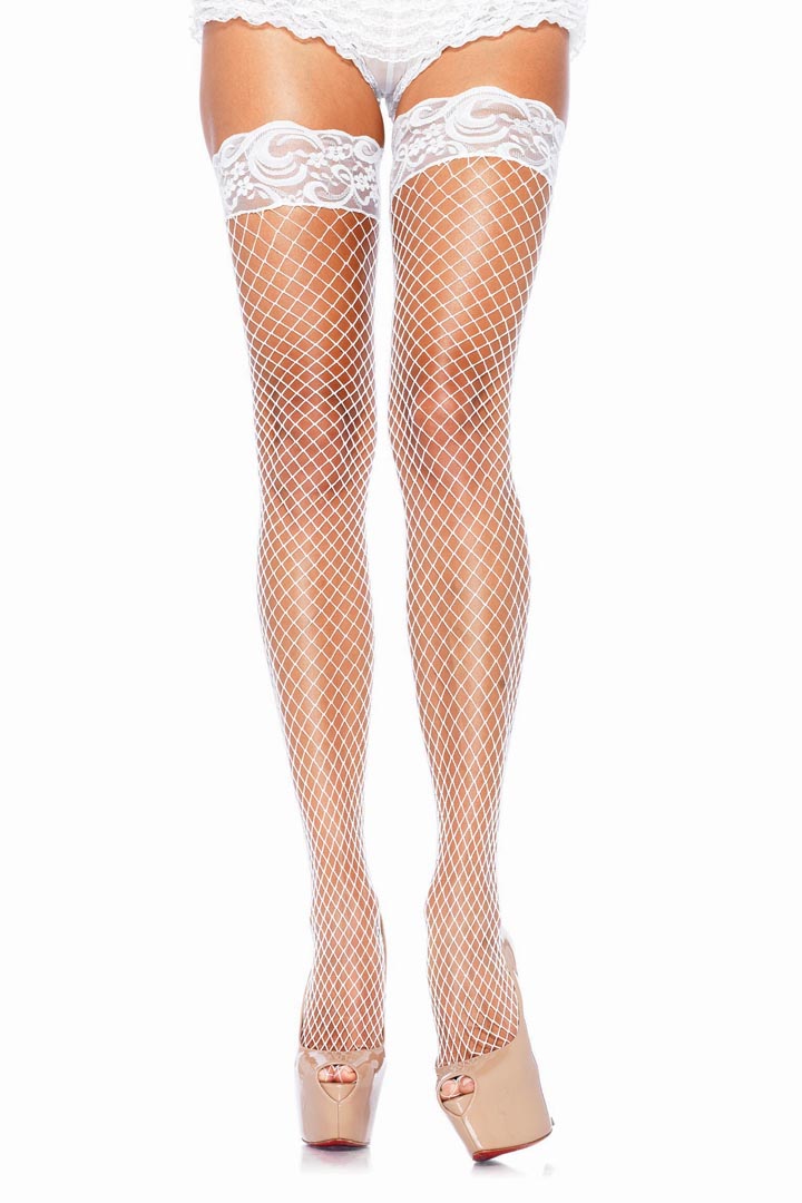 Bas autofixants résille à large maille et dentelle : caractéristiques principales
