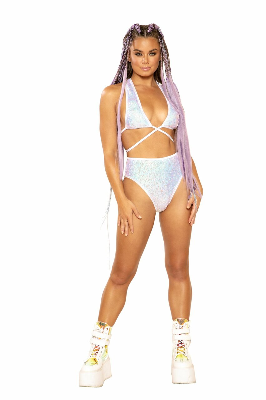 Ces bas de bikini à sequins lumineux mettent en valeur vos hanches avec une coupe haute et un dos échancré pour un look éclatant.