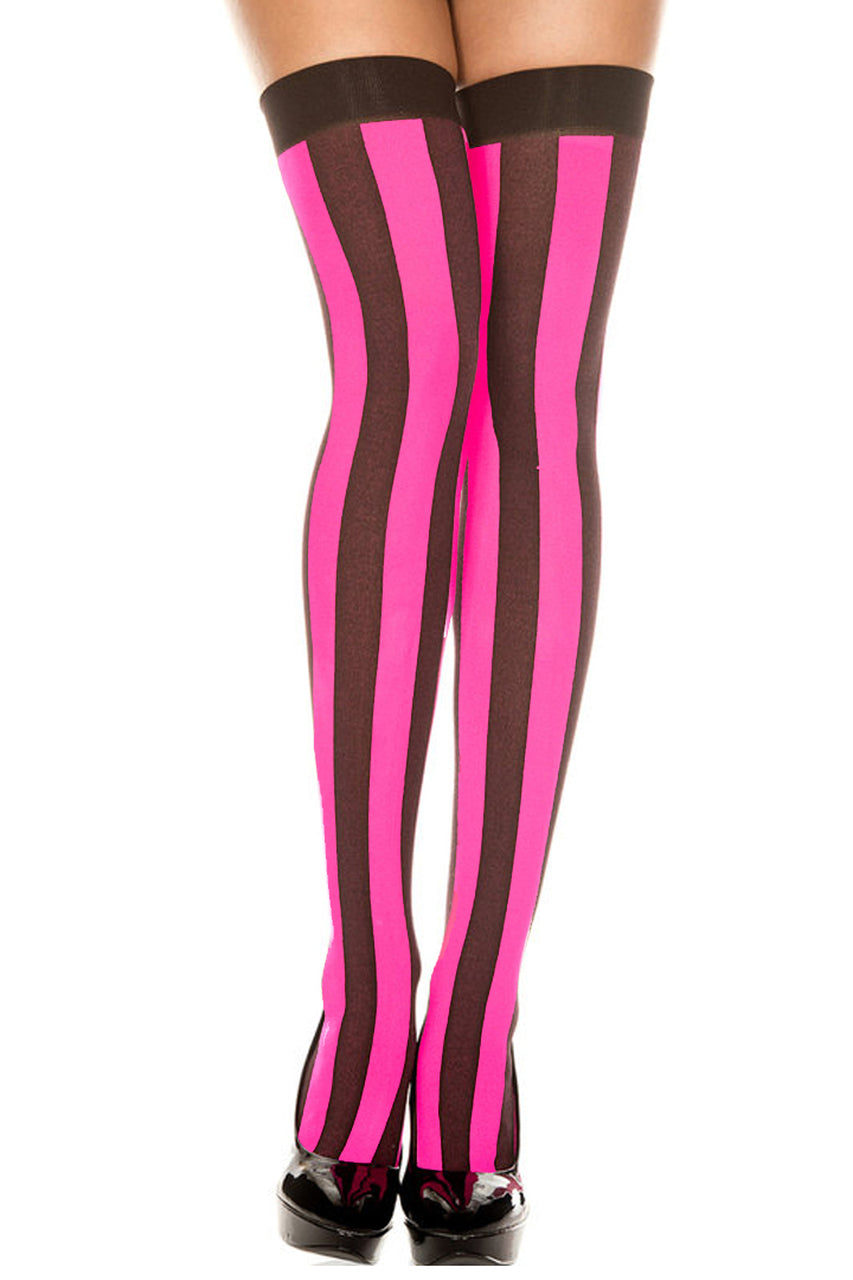 Les bas opaques rayés rose fuchsia et noir apportent une touche moderne à votre look tout en restant confortables sur de longues heures.