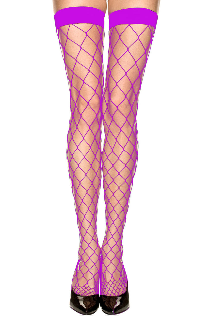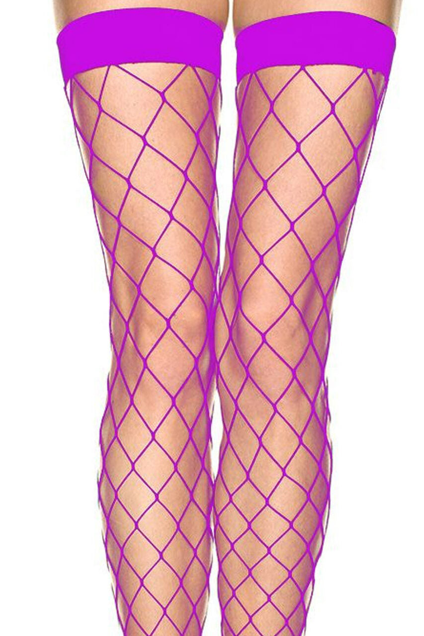 Ces bas résille violet losanges à large jarretière offrent une silhouette affirmée et un maintien optimal pour sublimer vos jambes. Inspirés des tendances lingerie actuelles, ils associent élégance et audace grâce à leur filet losangé intense et à leur large bande élastique confortable.