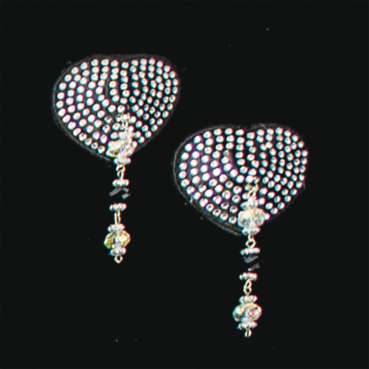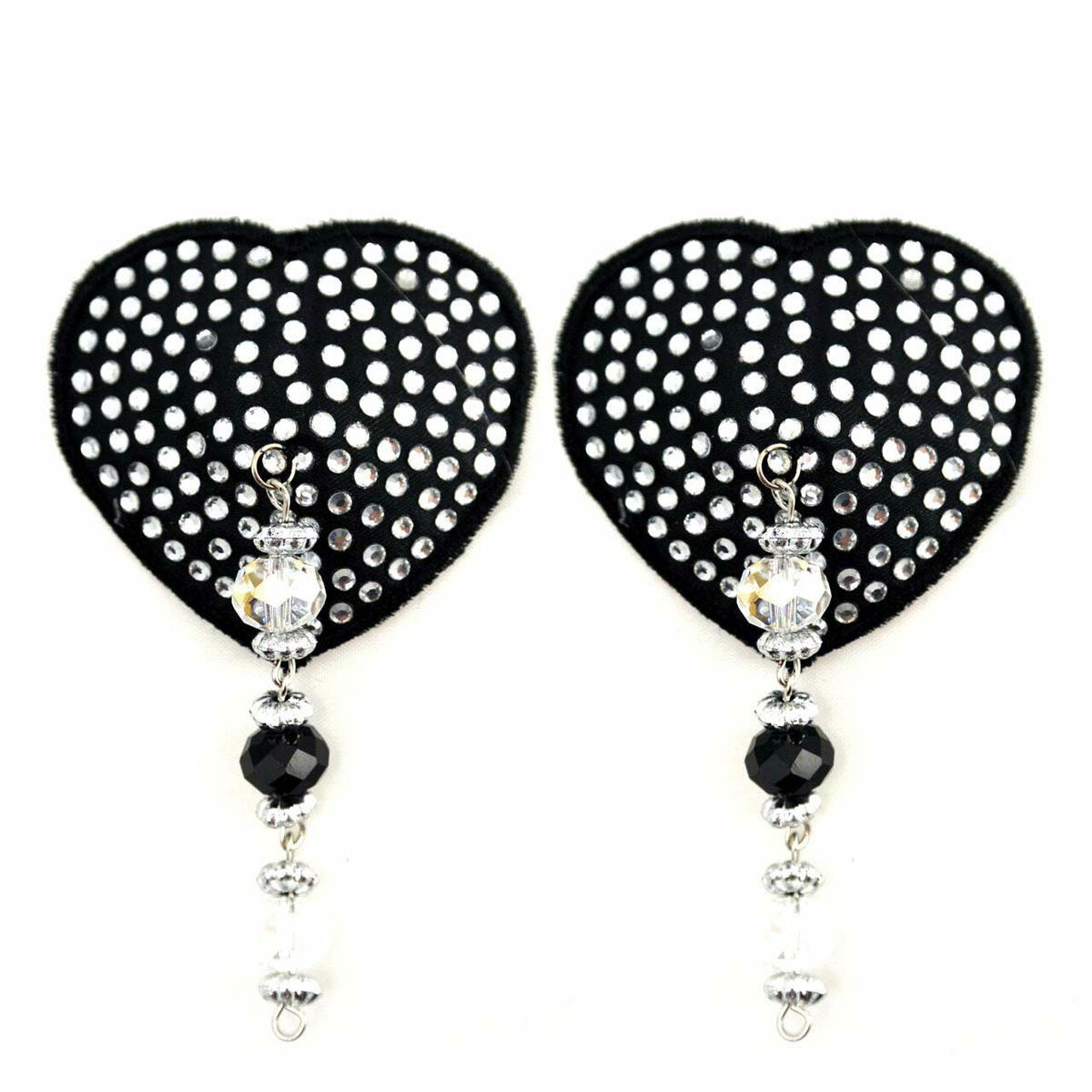Chaque pastie arbore une forme cœur ornée de cristaux noirs et de perles fines, fixés sur une base hypoallergénique. Importés d’Amérique auprès de fournisseurs professionnels, ces bijoux de nip se distinguent par la qualité de leurs éléments et leur finition soignée.