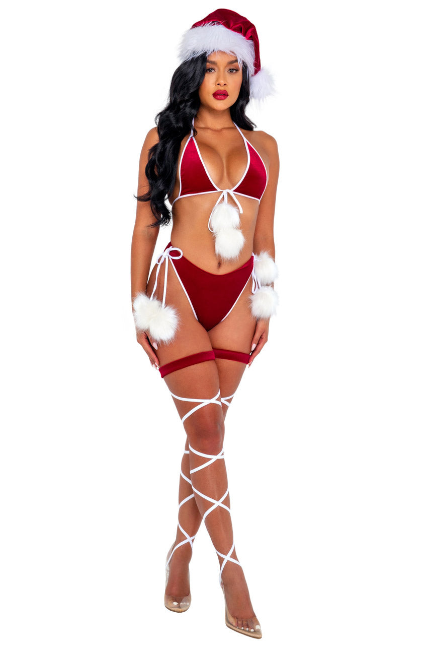 Description du bikini esprit de Noël en velours rouge