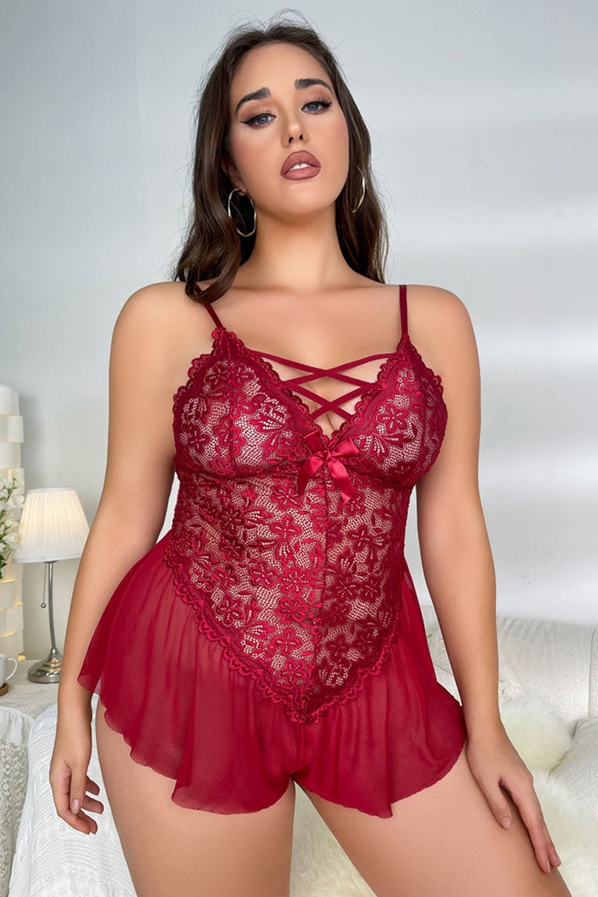Le body dentelle grande taille à volants offre une pièce de lingerie raffinée pour sublimer chaque silhouette.