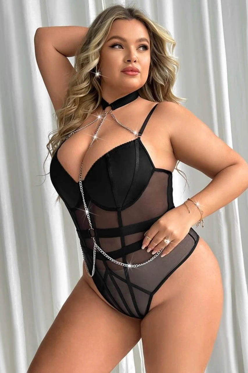 Pourquoi choisir ce body grande taille à strass et harnais