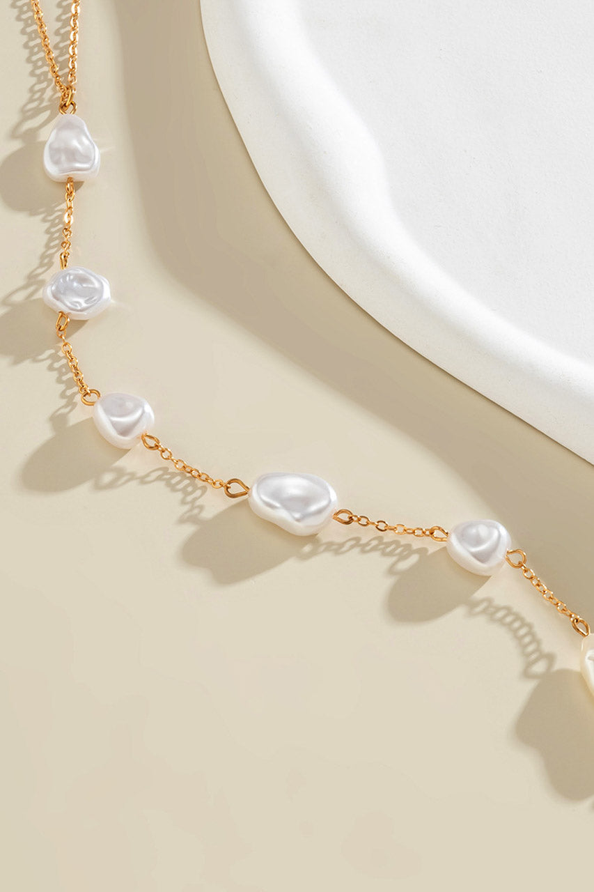 La chaîne corps perles dorées apporte une touche raffinée à vos tenues grâce à un design T-strap minimaliste et des perles synthétiques finement serties.