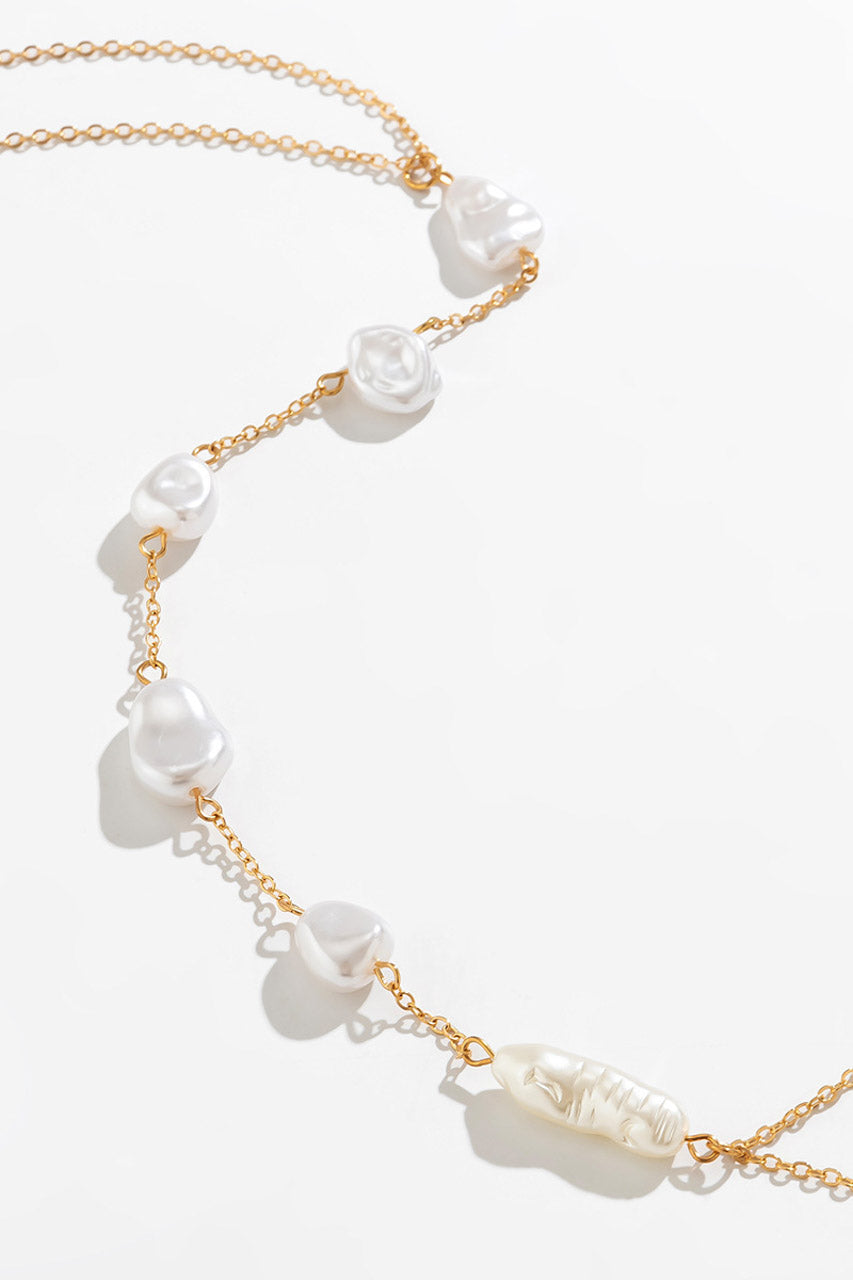 Fabriquée en métal plaqué or, cette chaîne offre une finition résistante à l’oxydation. Les perles imitant la nacre sont sélectionnées pour leur uniformité et leur légèreté.