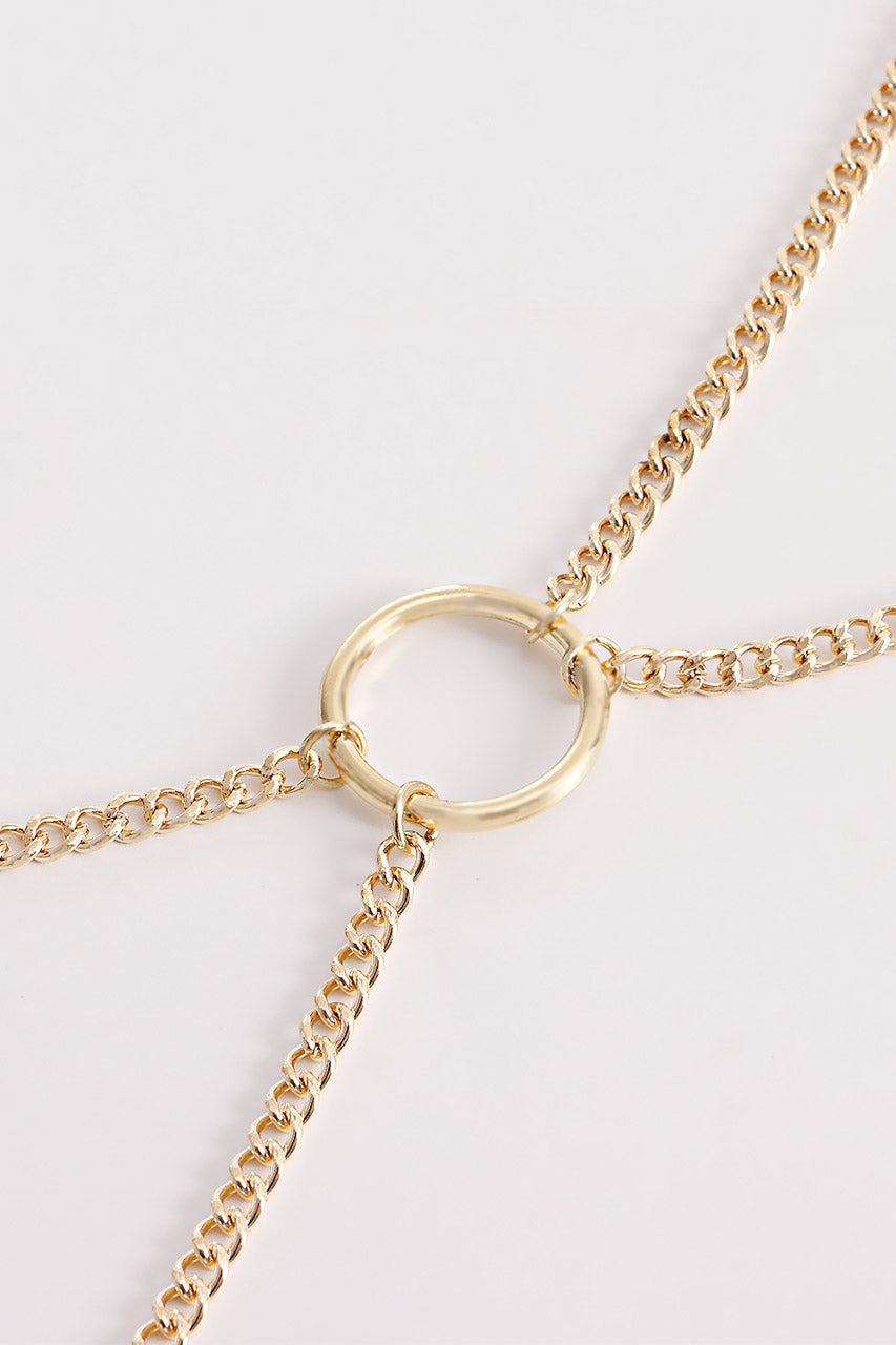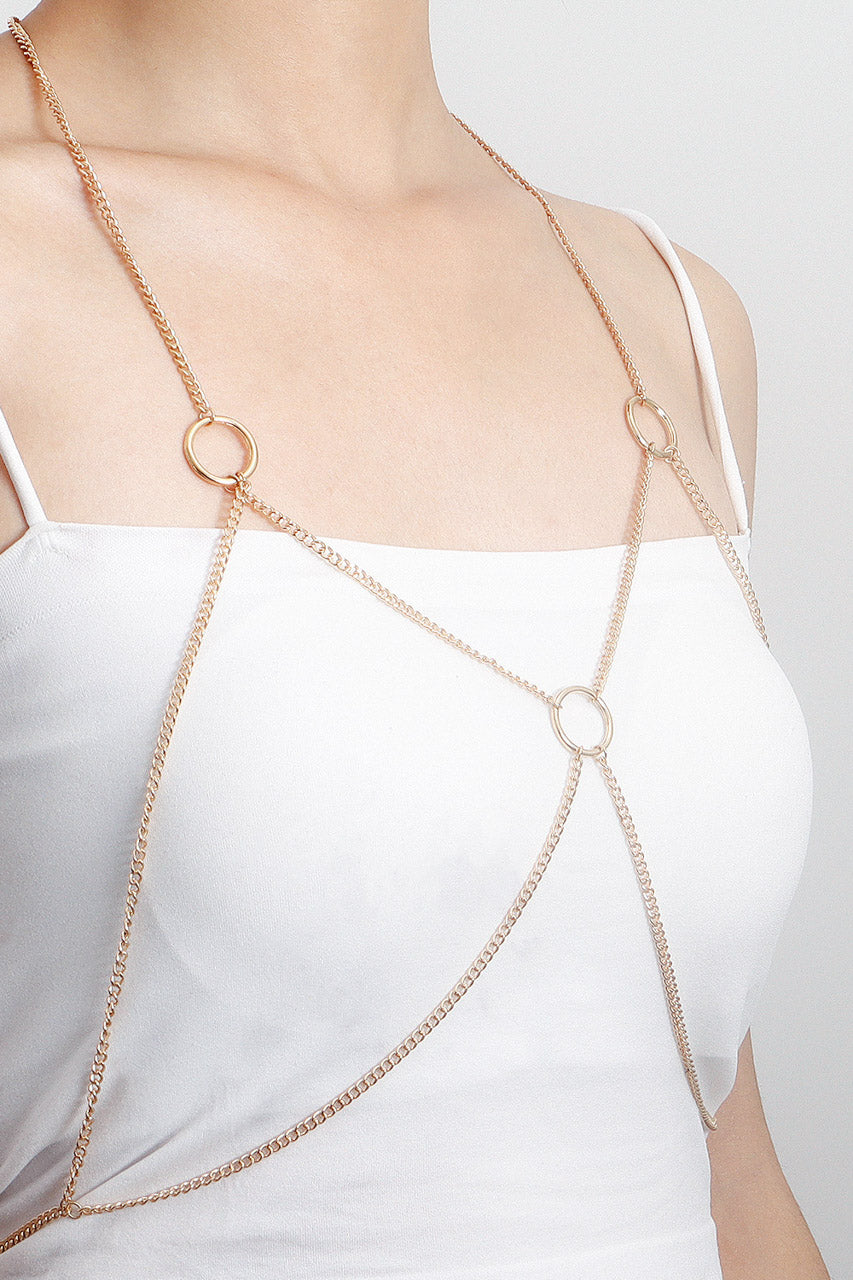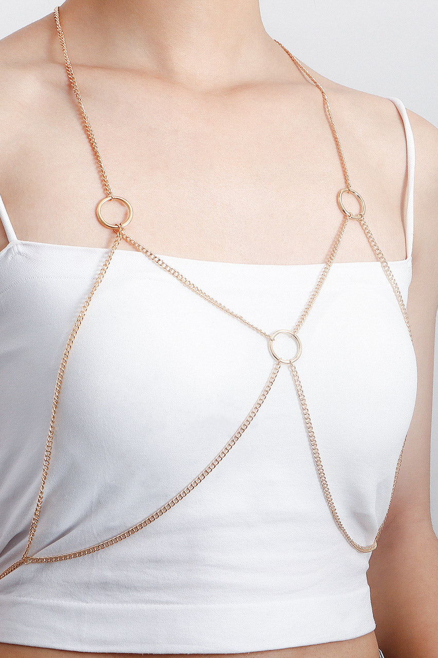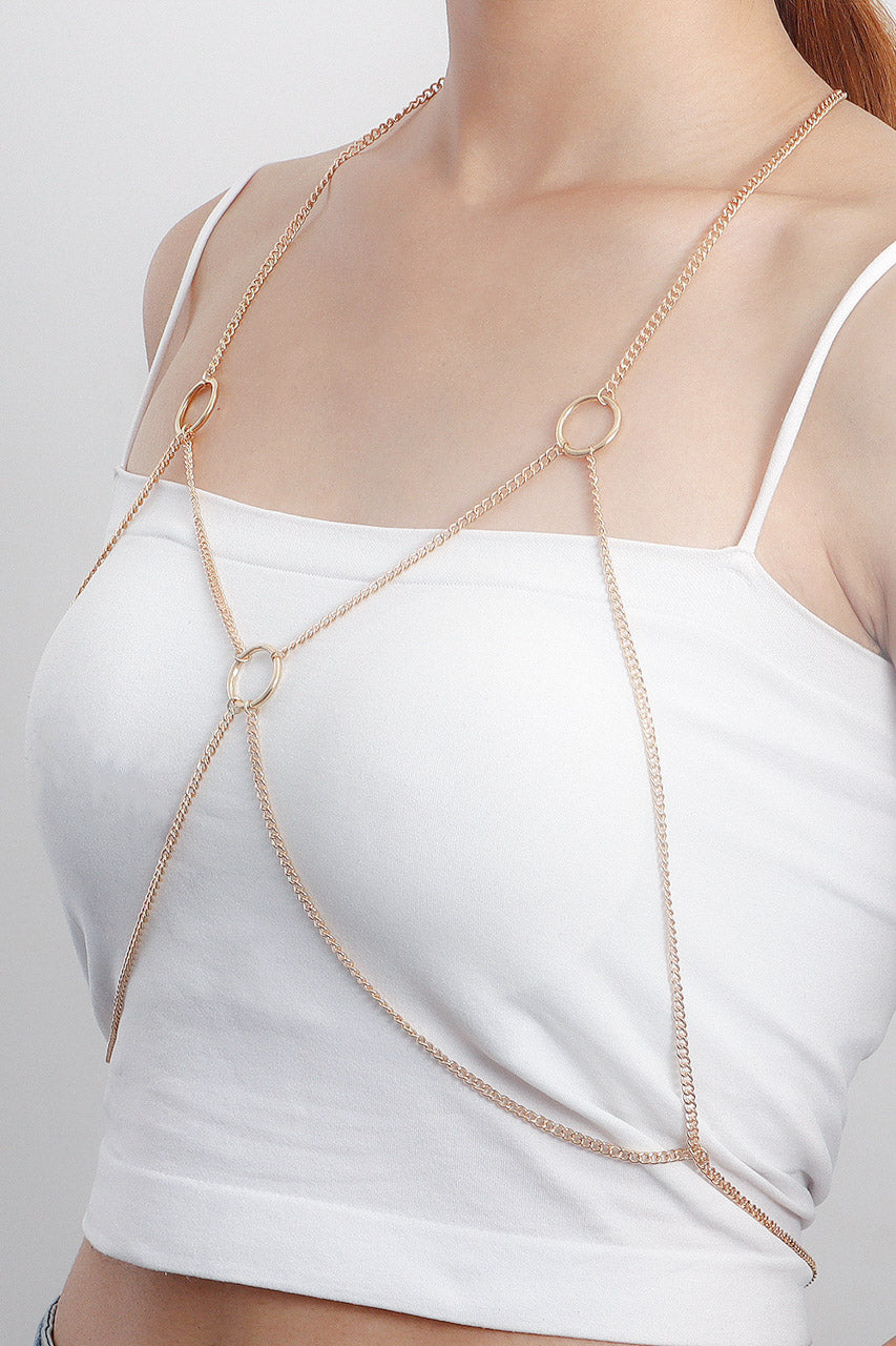 La chaîne de corps bust circle en métal associe design minimaliste et structure affirmée, idéale pour souligner la silhouette.