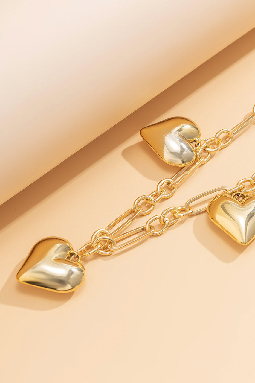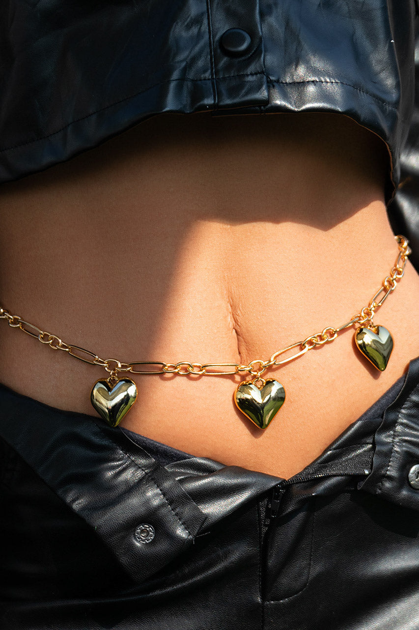 Adoptez une allure romantique avec cette chaîne de taille cœur en métal, conçue pour sublimer votre silhouette féminine. Chaque détail a été pensé pour offrir un équilibre parfait entre élégance et confort. Fabriquée en métal résistant, cette chaîne présente trois larges pendentifs en forme de cœur pour un rendu sophistiqué et charmant.