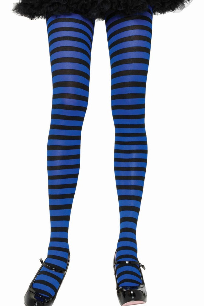 Imposez votre style grâce à ce collant rayé noir et bleu royal opaque associant élégance et maintien grâce à son tissage en nylon stretch.