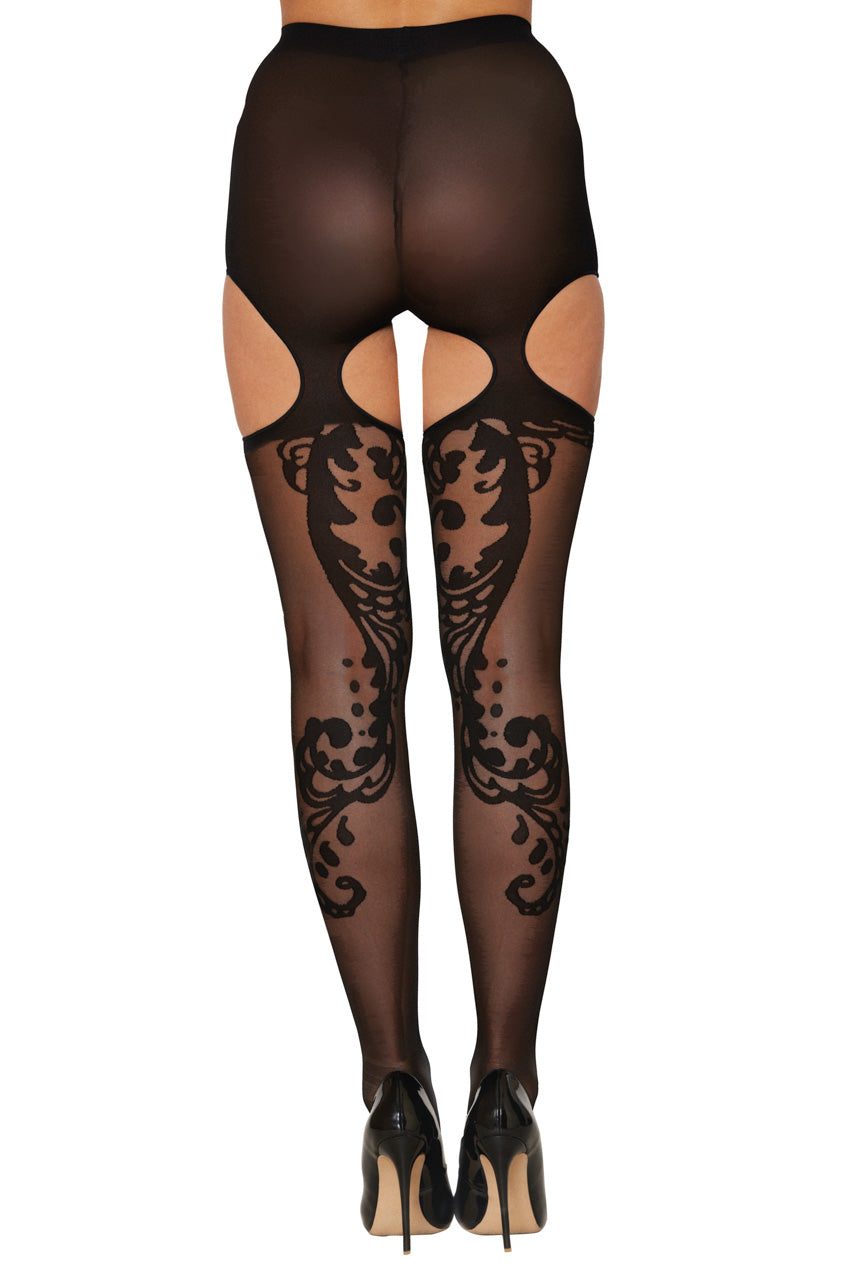 Design exclusif des collants jarretelles résille jacquard swirl