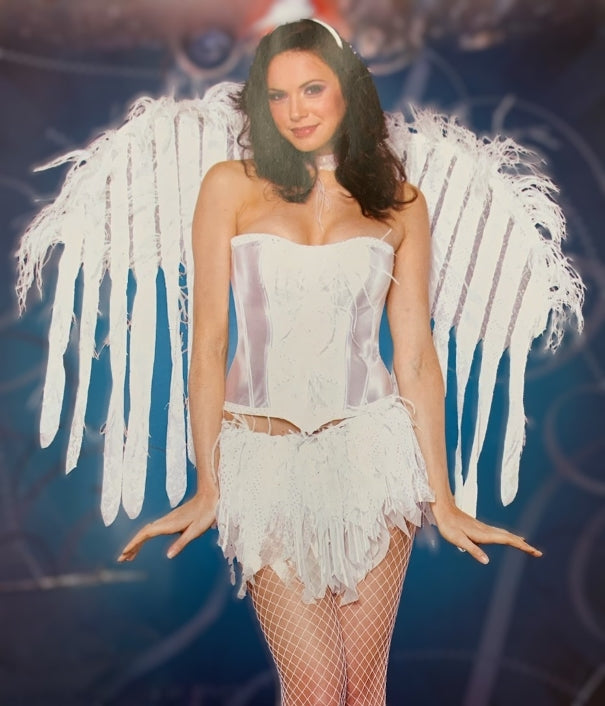 Adoptez un style céleste grâce à ce costume ange blanc avec ailes et accessoires, conçu pour allier élégance et confort lors de vos soirées déguisées.