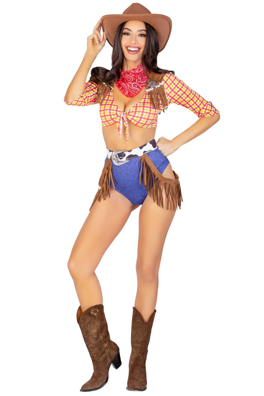 Votre costume cow-boy sexy 5 pièces offre une tenue audacieuse pour vos soirées à thème.