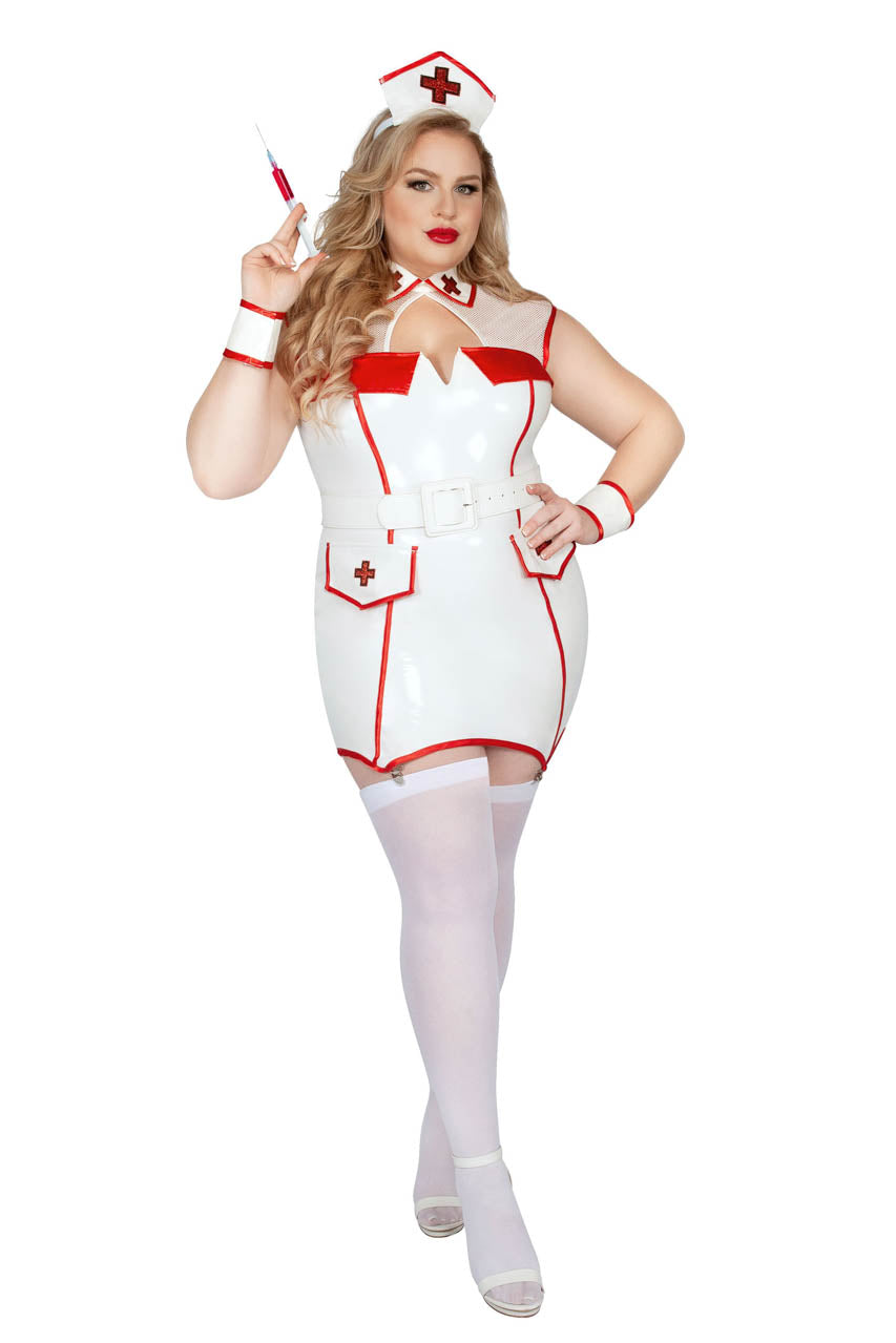 Le costume infirmière grande taille en spandex blanc et rouge allie design moderne et confort optimal pour vos événements à thème.