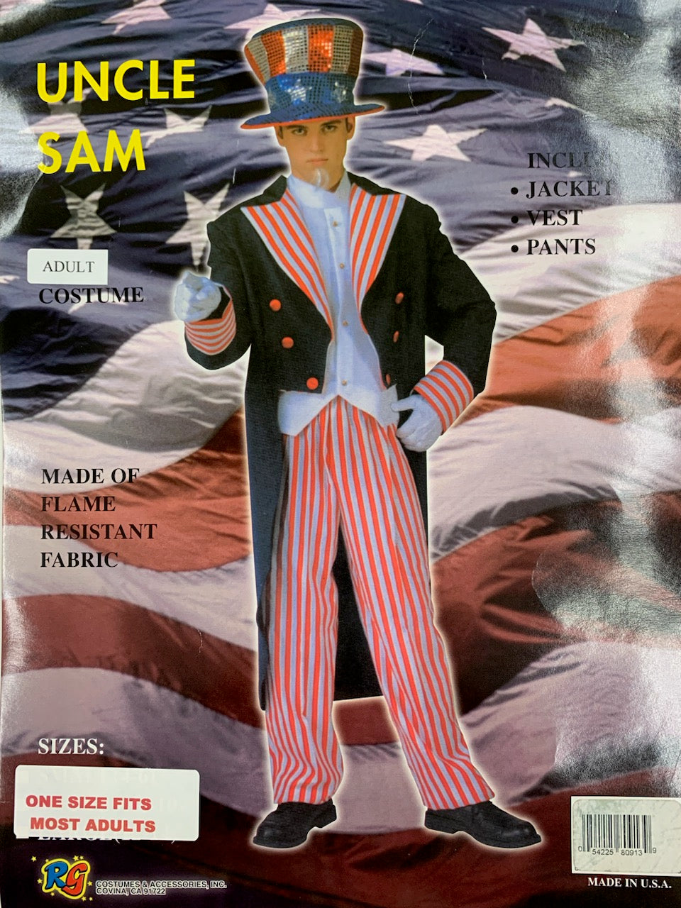 Ce déguisement se compose d’une veste bleu marine, d’un gilet étoilé et d’un pantalon rayé pour reproduire fidèlement l’esprit du légendaire Uncle Sam.