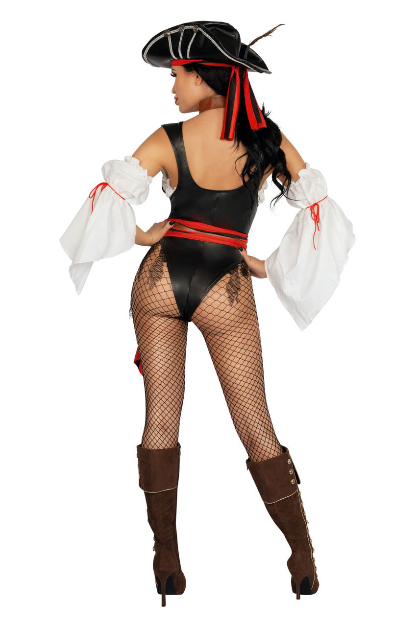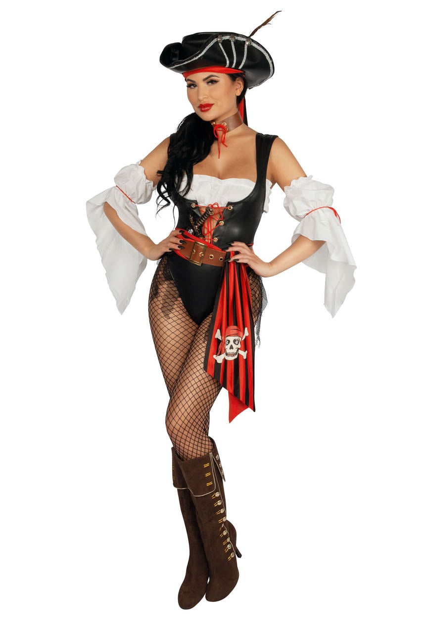 Associez ce costume à un sabre et à des bas résille. Pour un style parfait, visitez notre sélection de bottes sexy, idéales avec cette tenue de pirate femme.