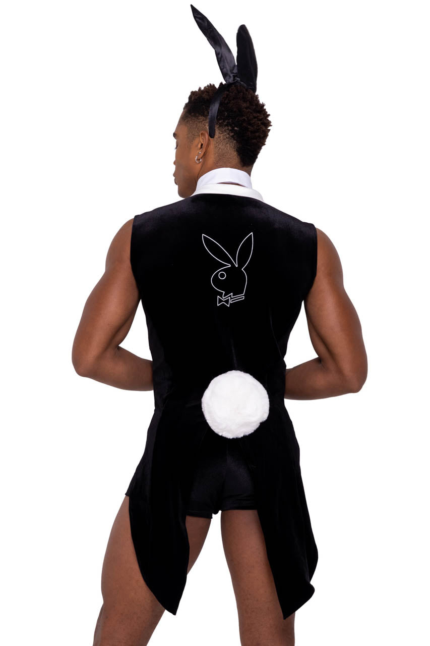 Notre costume tuxedo bunny Playboy homme associe élégance et audace grâce à son tissu en velours noir et ses finitions soignées.