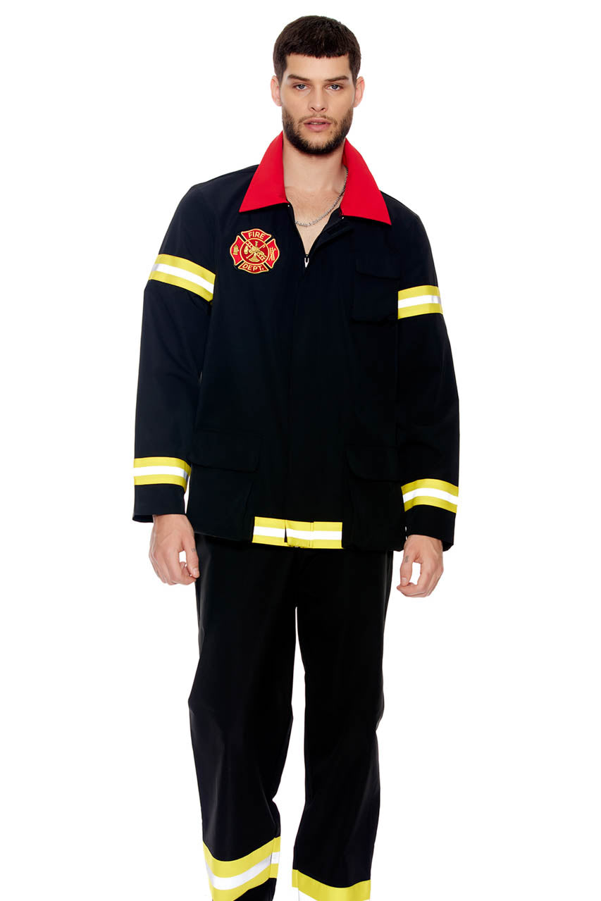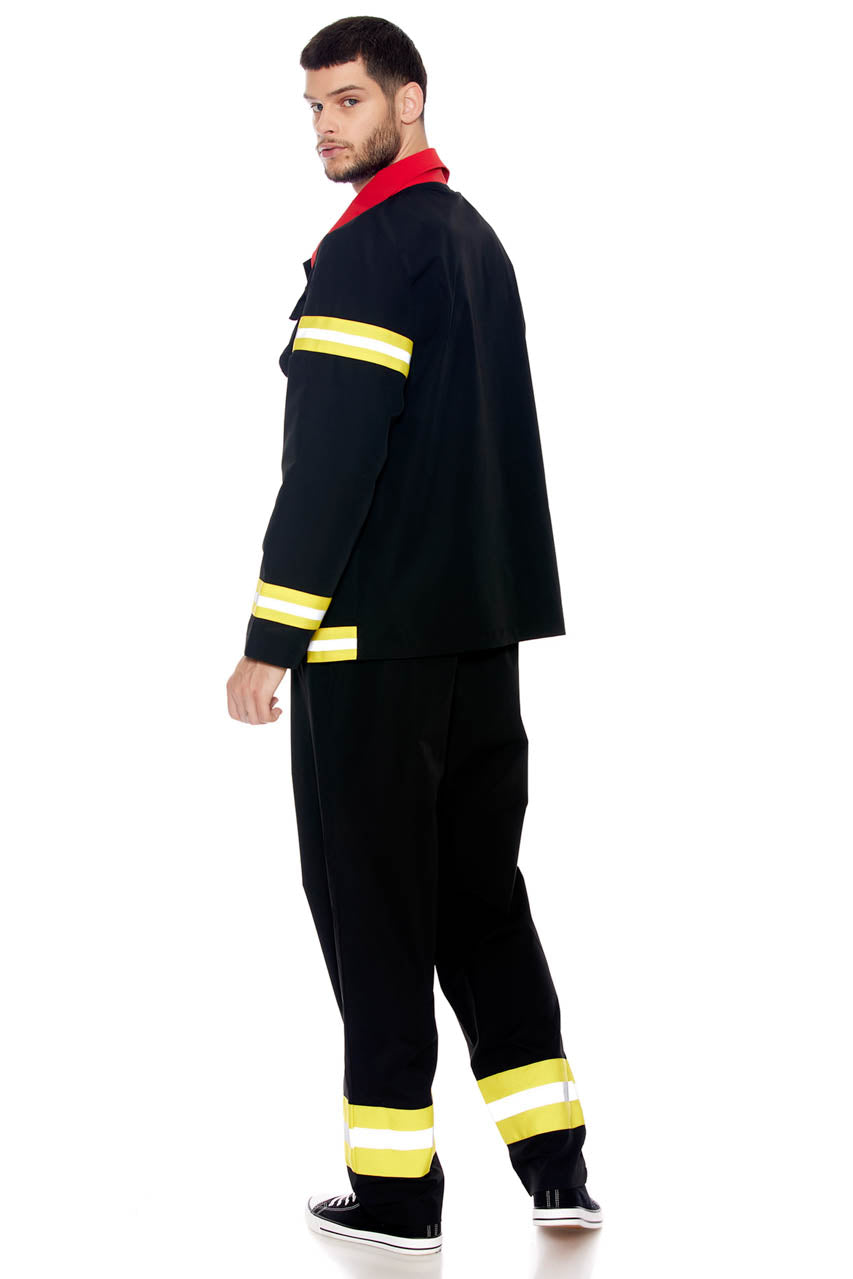 Le costume pompier homme deux pièces zippé offre une tenue réaliste et confortable pour tous vos événements costumés.