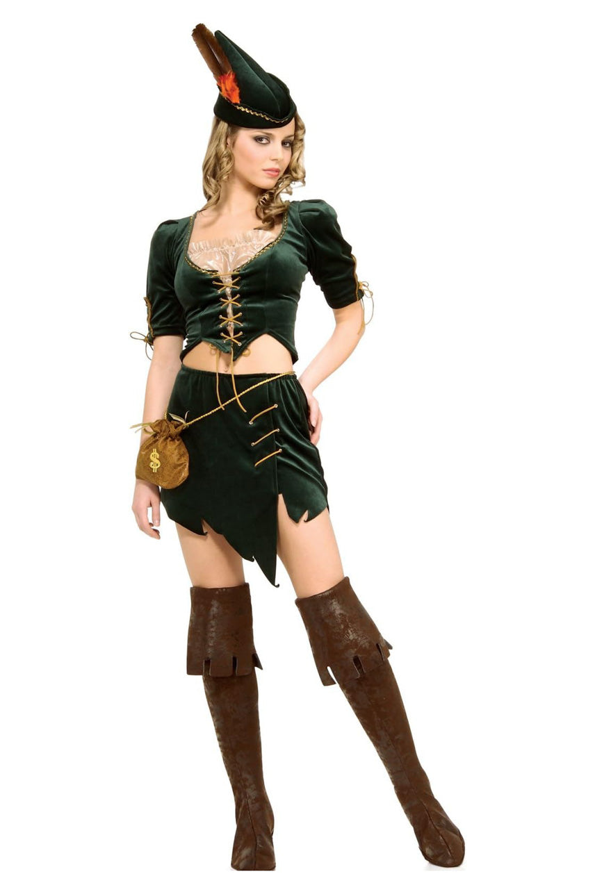 Adoptez le Costume princesse des voleurs pour imposer votre charisme lors de chaque fête costumée. Cette tenue regroupe un chapeau incliné, un haut ajusté, une jupe fluide et une ceinture avec bourse intégrée, idéale pour conserver vos petits trésors. Les bottes ne sont pas fournies.