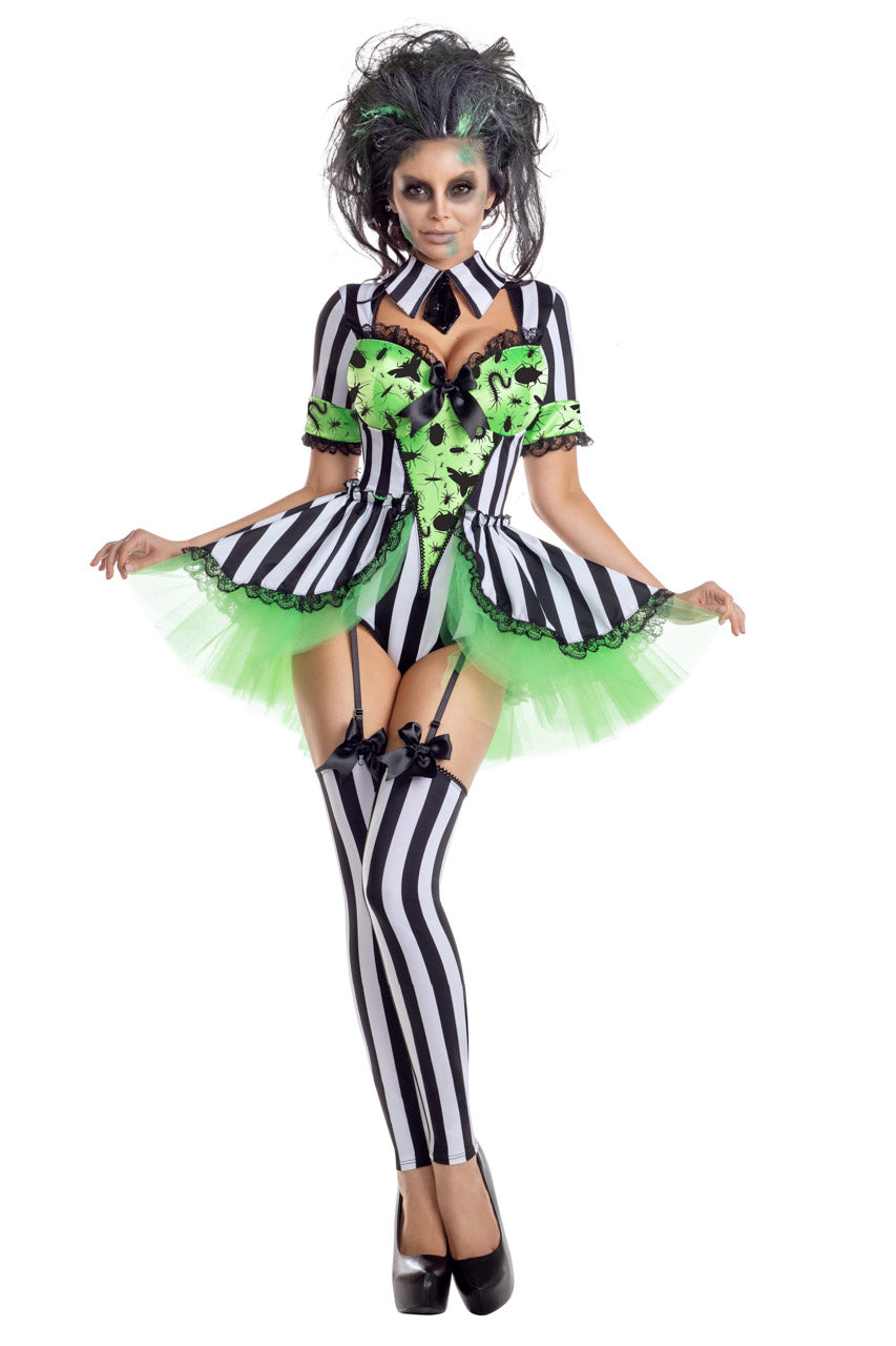 Le costume sexy scarabée à volant et dentelle se distingue par son style audacieux et ses motifs insecte raffinés, idéal pour ajouter une touche de séduction à vos soirées costumées.