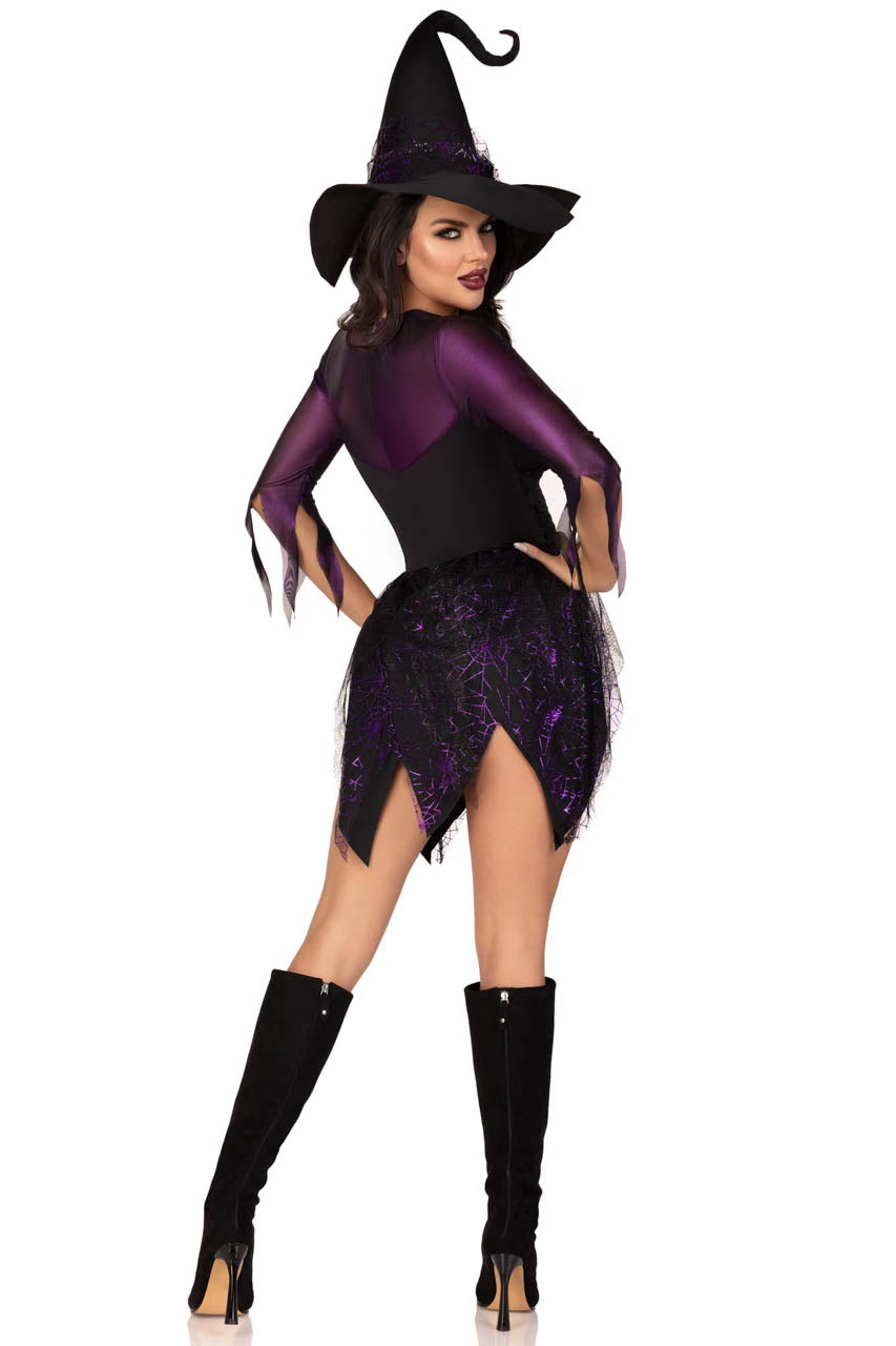Élevez votre style lors de vos soirées à thème ou d’Halloween avec ce costume de sorcière mystique sexy en velours noir et tulle violet.