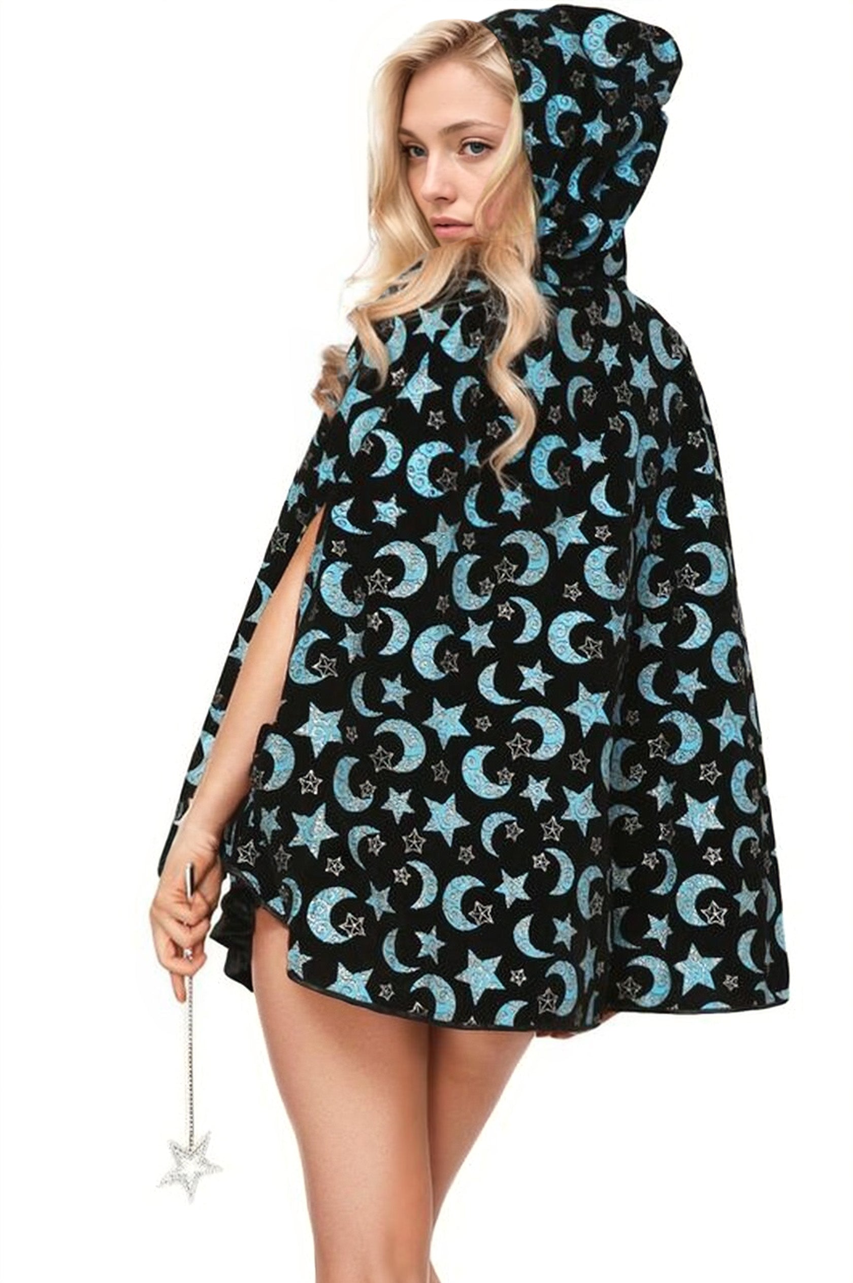 - Cape à capuche en velours doux avec motifs lune et étoiles pailletés
