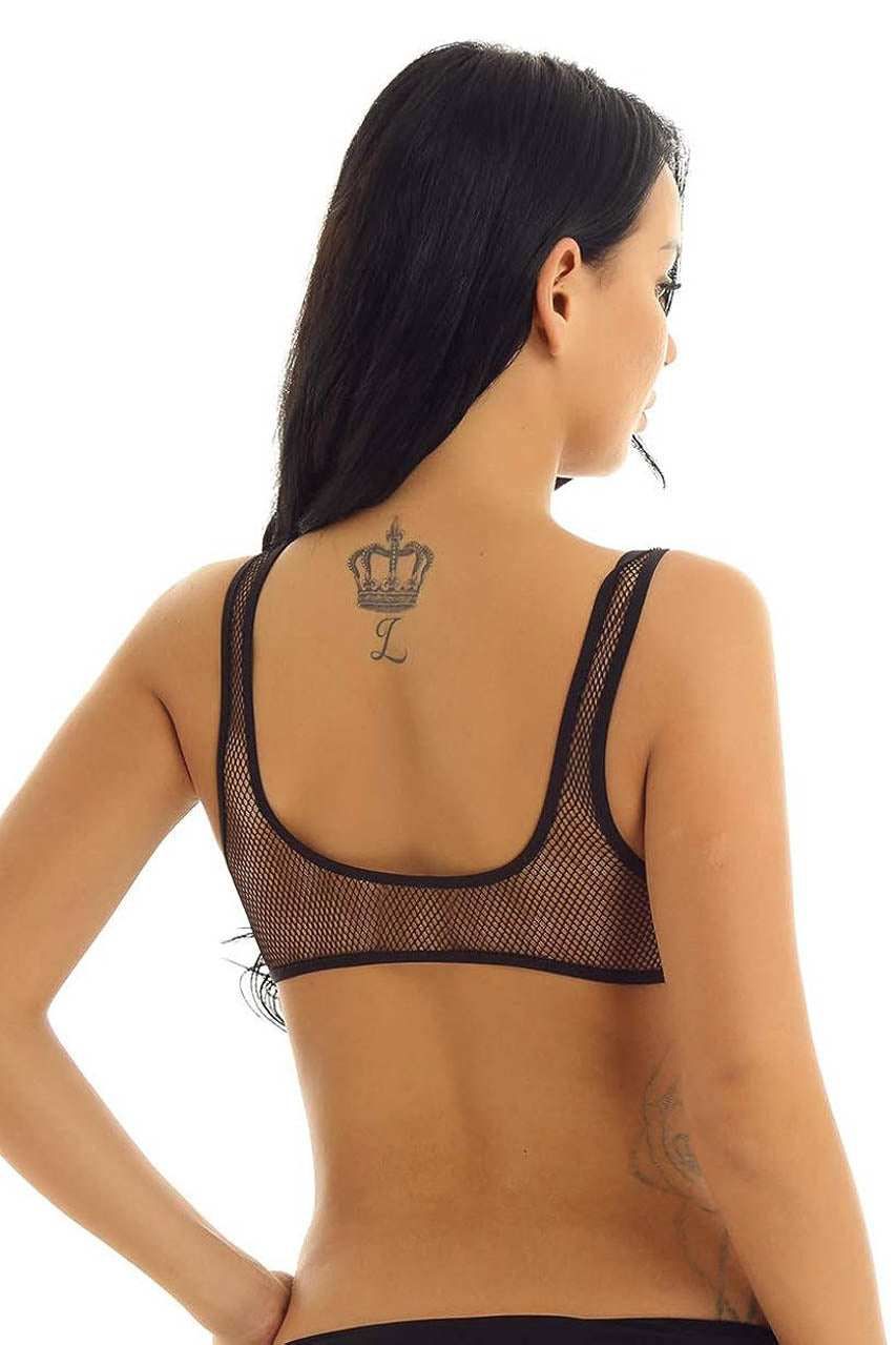 Associez ce crop top résille sexy à un soutien-gorge minimaliste disponible dans notre collection soutien-gorge sexy pour un ensemble coordonné.