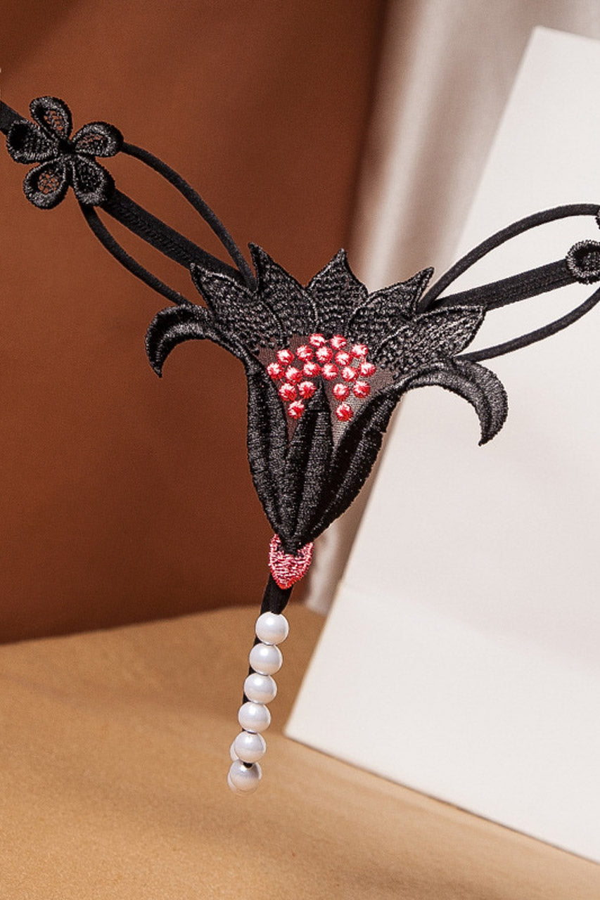 La culotte ouverte brodée de lys apporte une touche florale et sensuelle à votre garde-robe intime, grâce à des motifs de lys délicatement brodés sur un tissu extensible et léger.