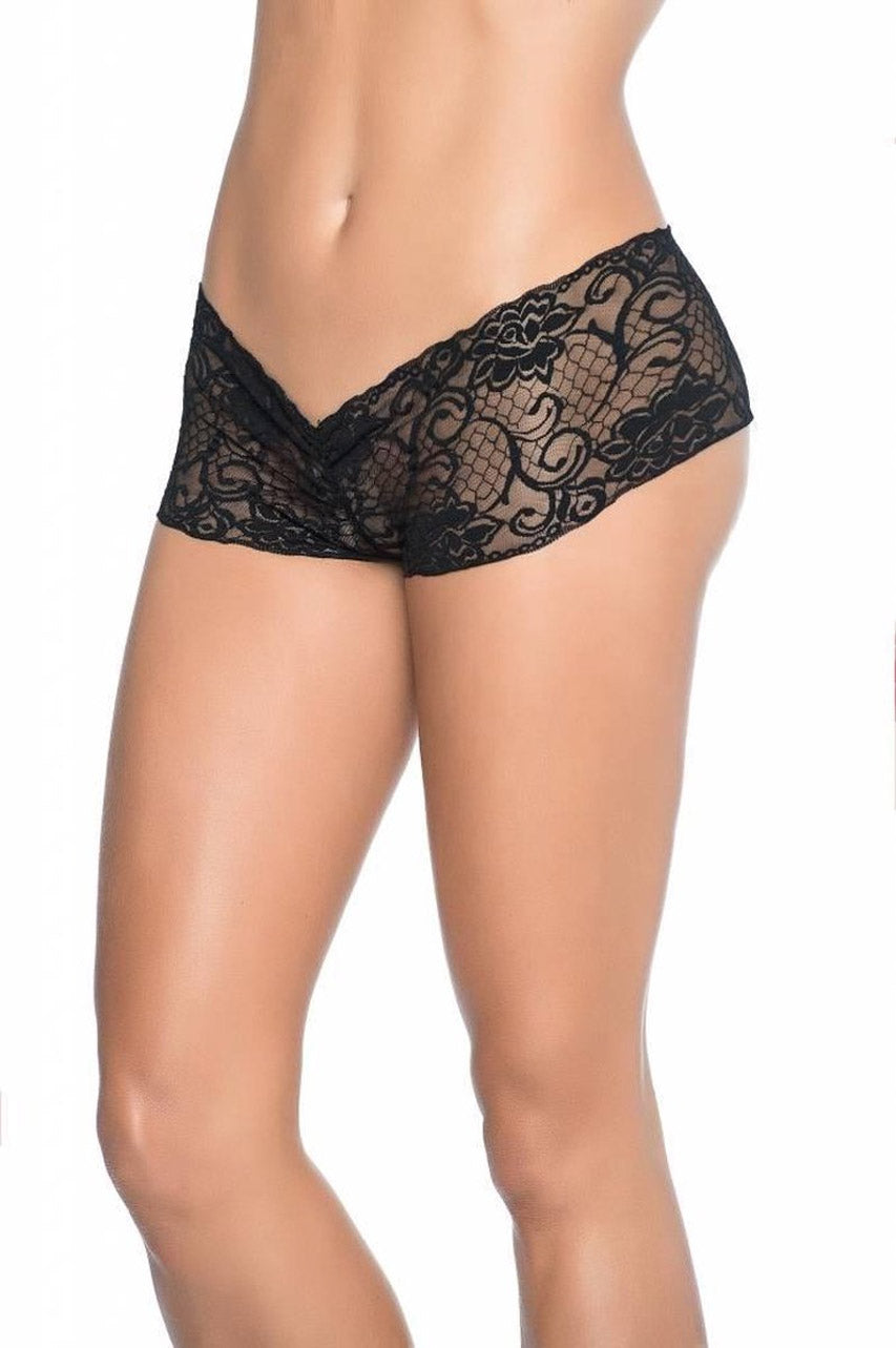Confectionnée en dentelle stretch importée d’Amérique, cette culotte shorty propose une élasticité optimale et une grande résistance aux lavages successifs. La taille élastiquée assure un ajustement sans serrer.