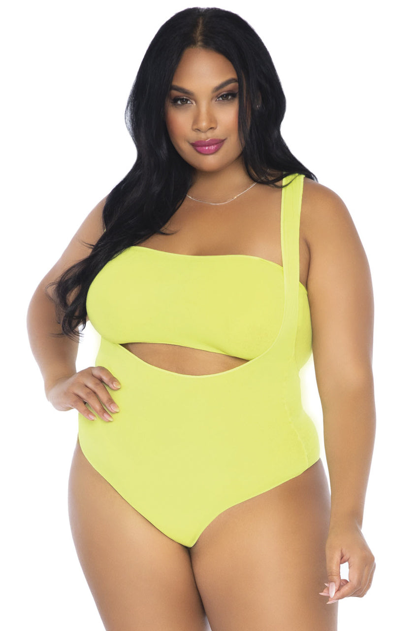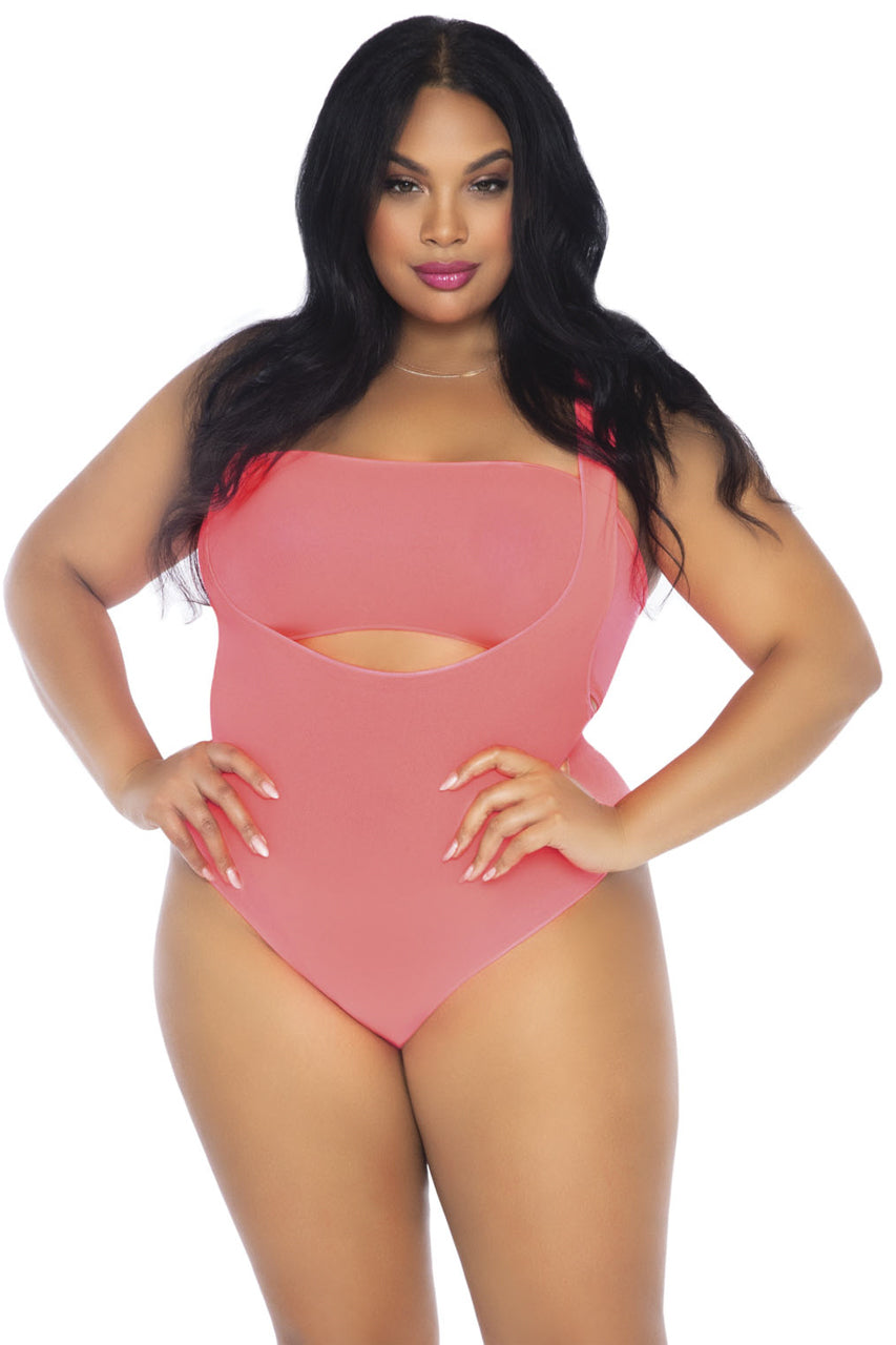 Cet ensemble bandeau et body porte-jarretelles grande taille associe un bandeau brassière et un body à ouverture poitrine pour sublimer les silhouettes généreuses.
