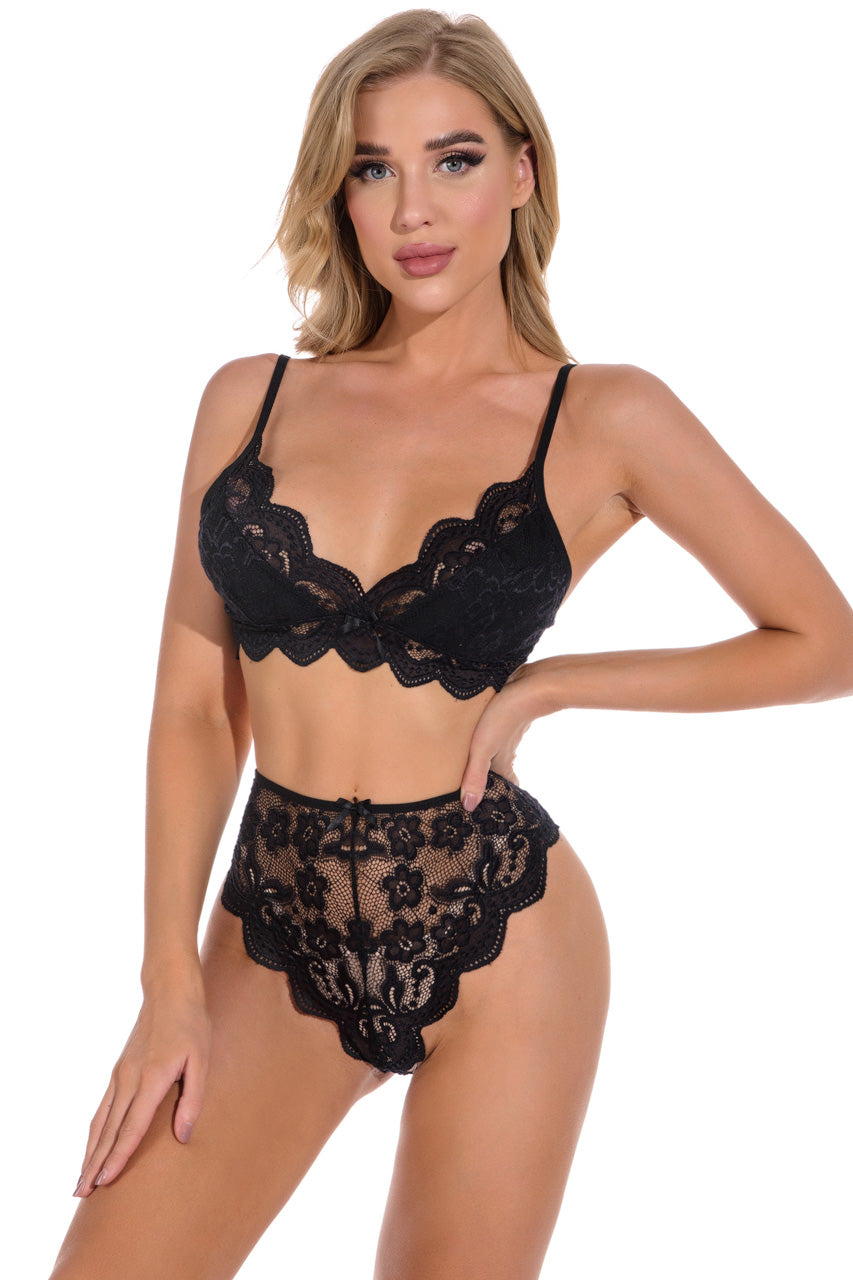 L’ensemble lingerie taille plus Lucky en dentelle propose un soutien adapté et un style raffiné, avec un soutien-gorge orné de dentelle festonnée et une culotte taille haute assortie.