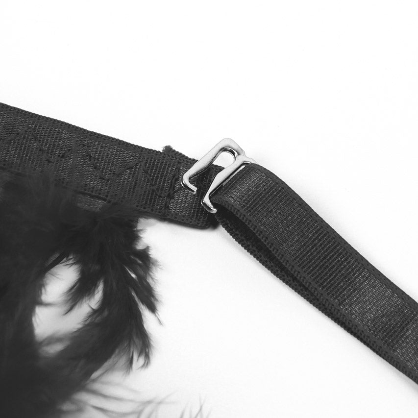 - Bretelles ornées de fausses plumes pour une touche audacieuse