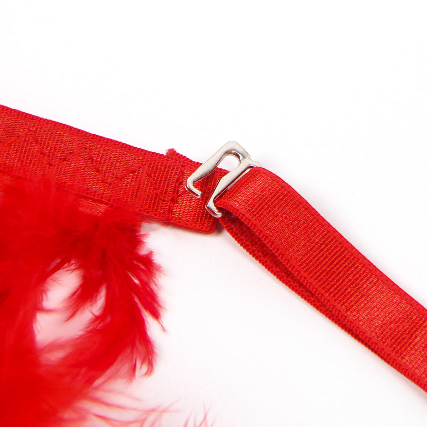 Votre nouvel ensemble lingerie dentelle, plumes et chaînes associe finesse et audace pour un style sophistiqué et sensuel.