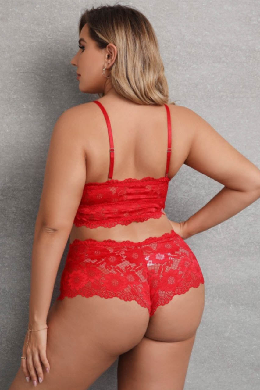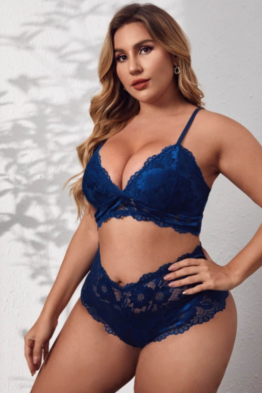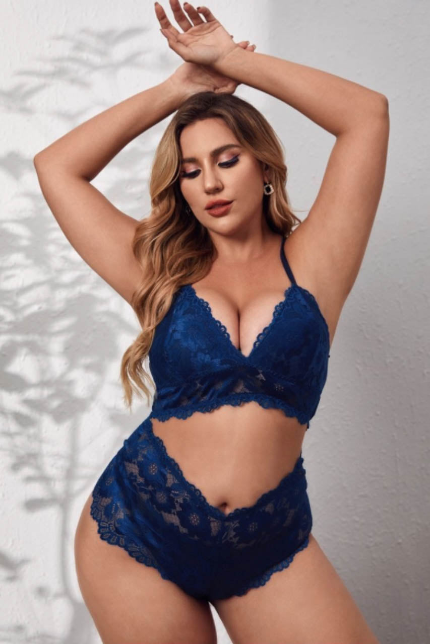 L’ensemble lingerie grande taille en dentelle allie élégance et confort pour les silhouettes généreuses. La bralette en dentelle propose un galbe naturel grâce à sa bande sous-poitrine large et à ses bretelles croisées au dos. La culotte assortie, taillée pour sublimer les courbes, adopte une découpe échancrée à l’arrière.