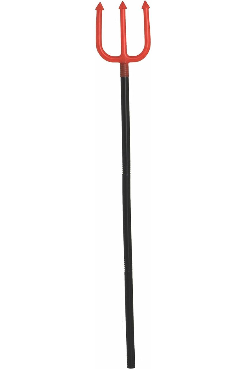 La fourche télescopique rouge et noire pour costume transforme instantanément votre tenue en attribut de guerrier médiéval ou de diable d’Halloween.