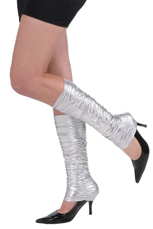 Les jambières métalliques argentées, ou leg warmers en finition miroir, habillent vos jambes d’une brillance spectaculaire, idéale pour compléter un déguisement futuriste ou une tenue de soirée festive.