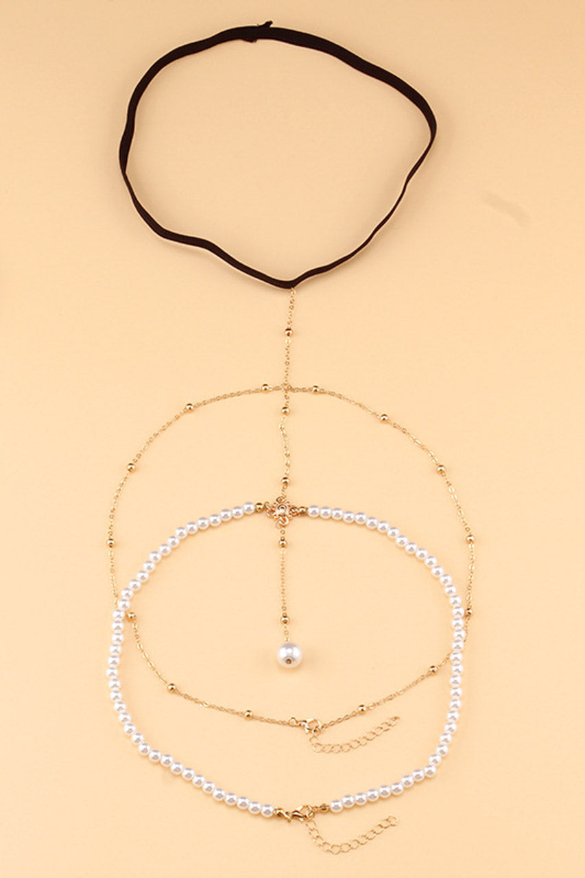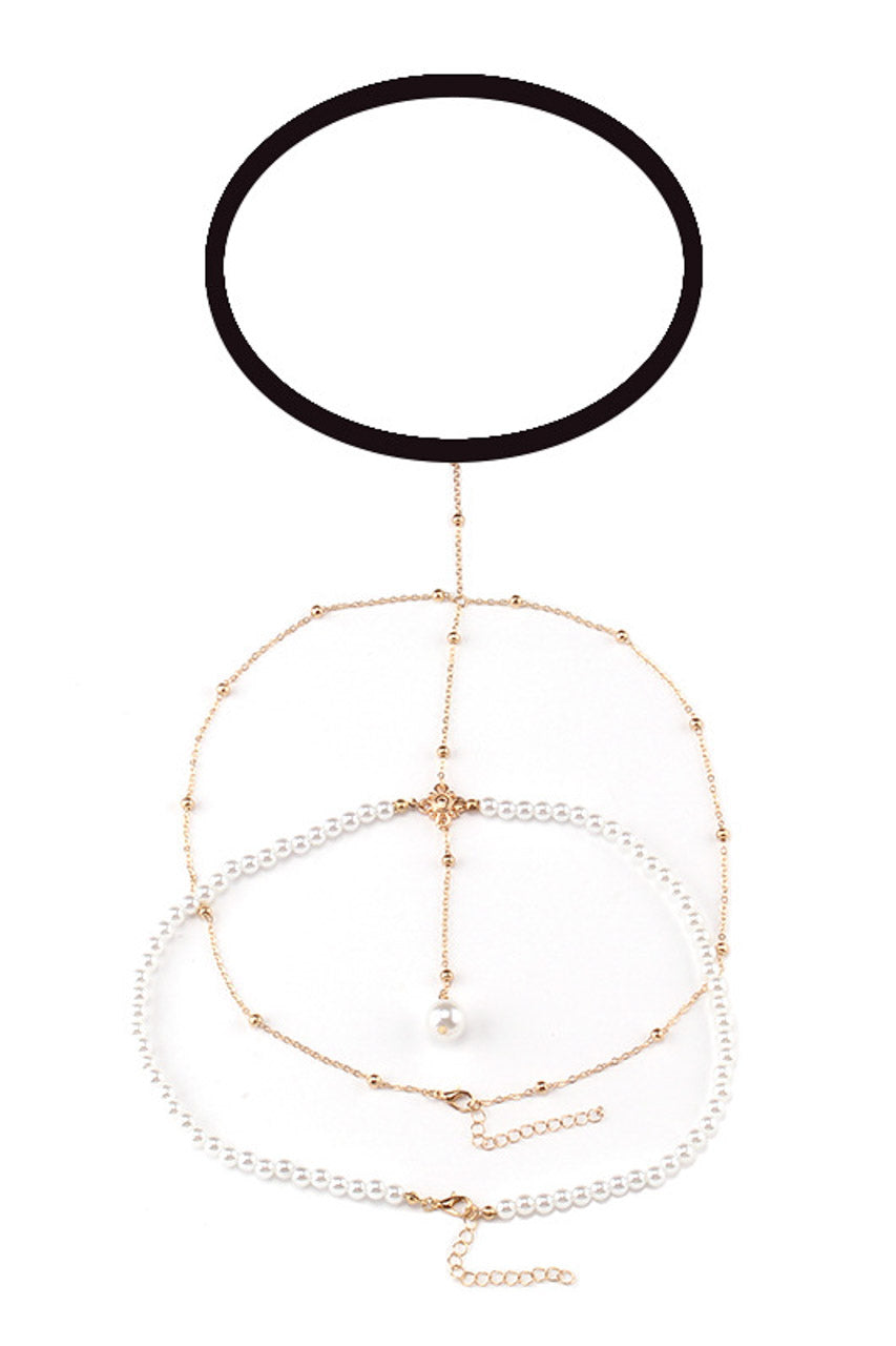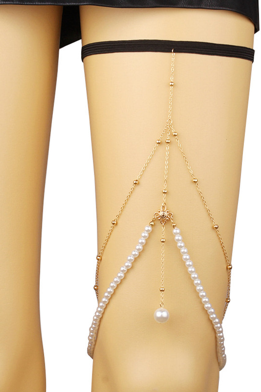 La jarretière chaîne et perles associe délicatement des perles nacrées à une chaîne métallique fine pour sublimer vos tenues.