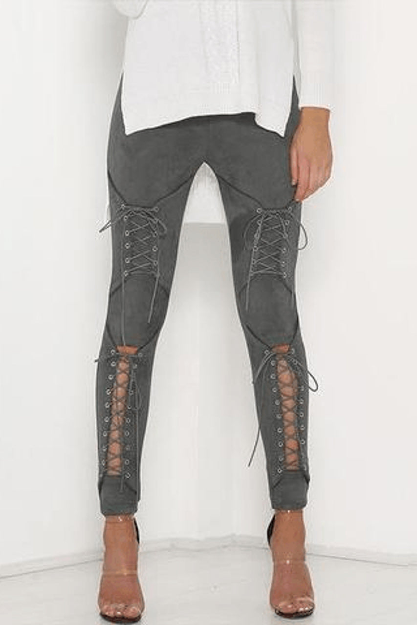 Le legging daim à lacets sexy offre une silhouette affinée grâce à sa coupe près du corps et son tissu en suède doux. Les lacets ornant l’avant créent un jeu de style moderne, parfait pour sublimer vos looks de soirée ou composer une tenue streetwear soignée.