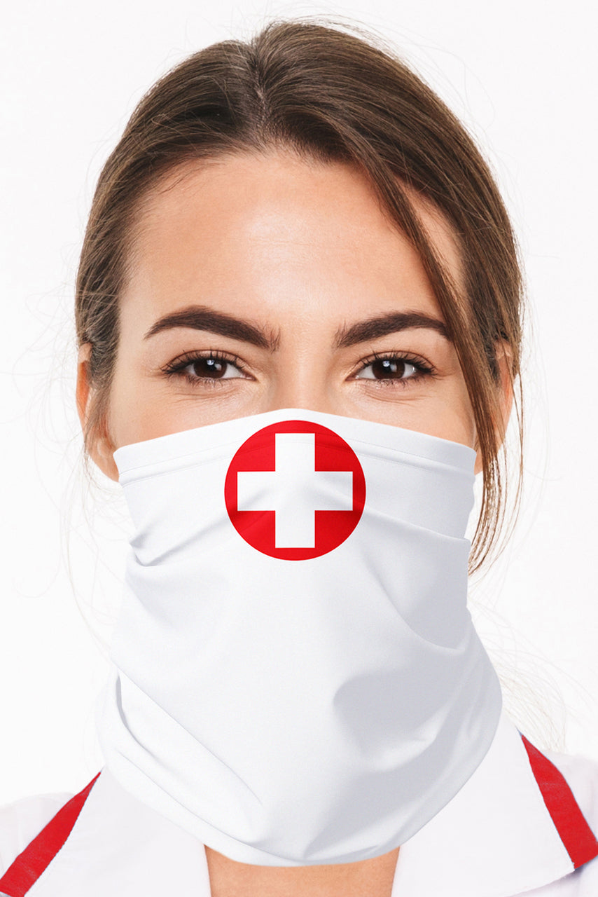 Ce masque gaiter reprend le motif iconique de la croix rouge pour une allure authentique de professionnelle de santé. Sa forme tubulaire s’enfile facilement et couvre le bas du visage sans serrer.