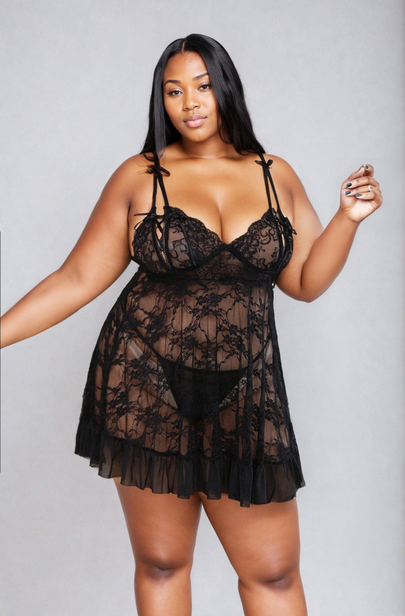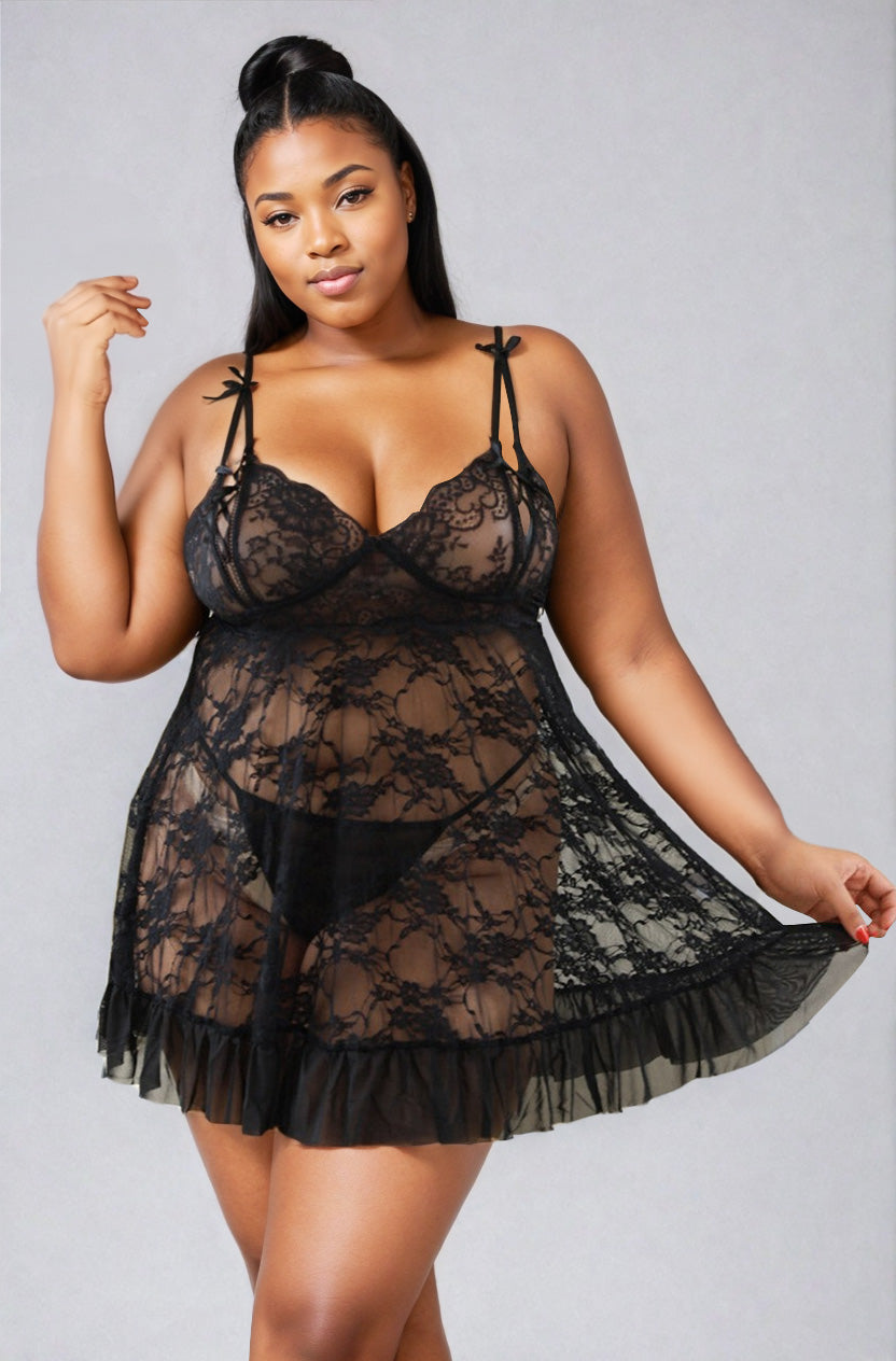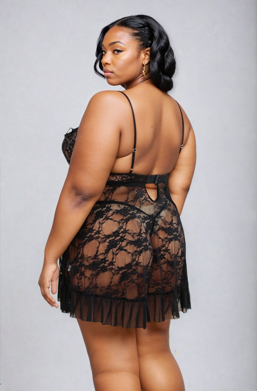 Cette nuisette grande taille en dentelle noire propose un maintien optimal grâce à ses bonnets armatures étudiés pour épouser les formes.