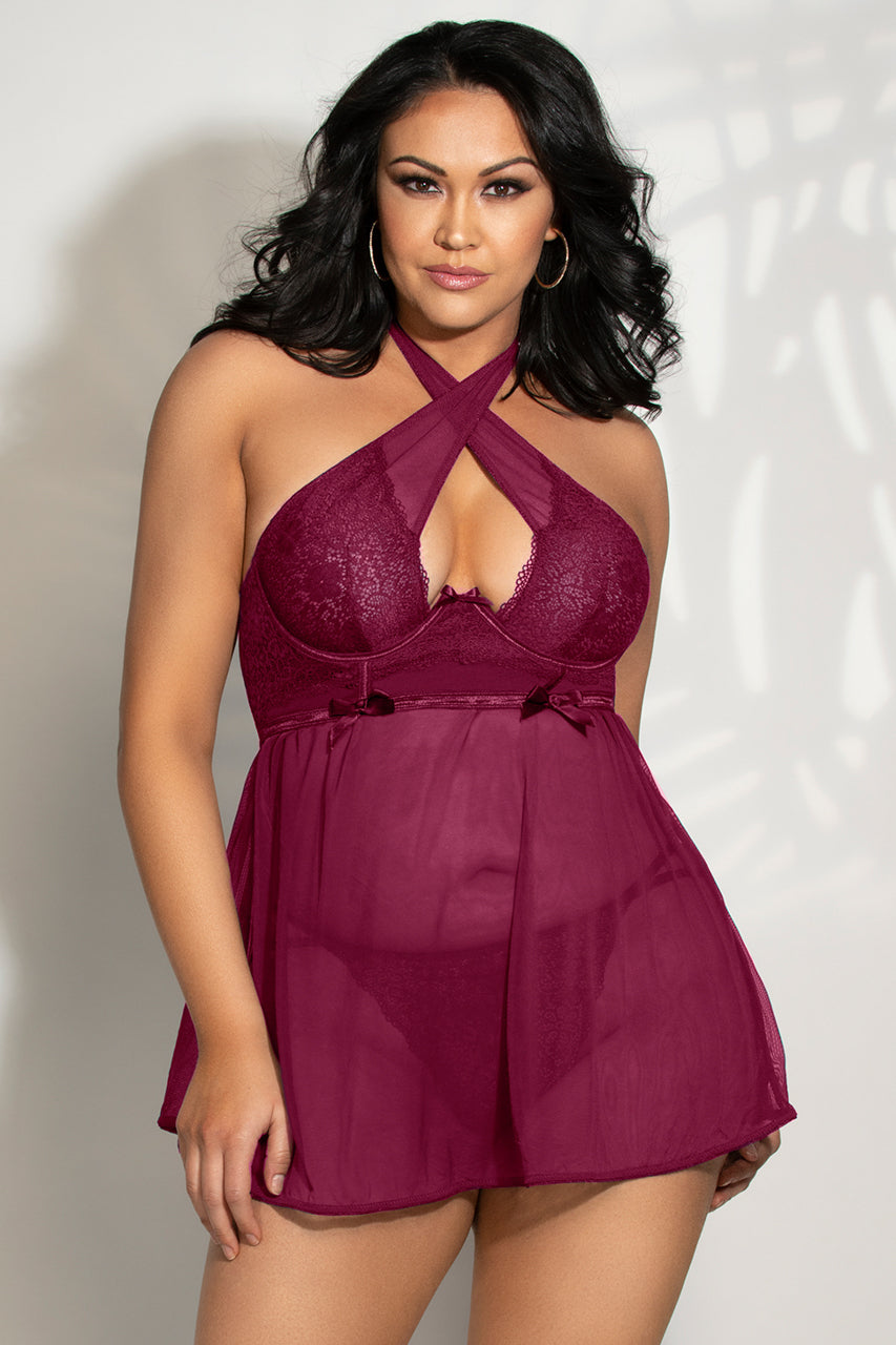 Nuisette grande taille Drama Queen en dentelle et tulle offre un mélange de sensualité et de maintien adapté aux courbes généreuses.