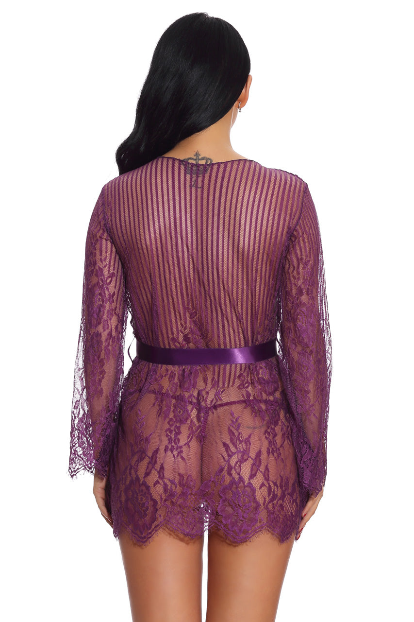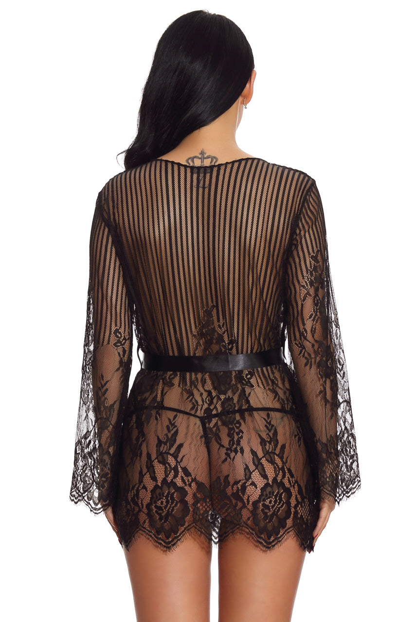 La taille est mise en valeur par une ceinture satinée ajustable, assurant un maintien personnalisé. Les bords en dentelle à cils offrent un détail raffiné et durable.