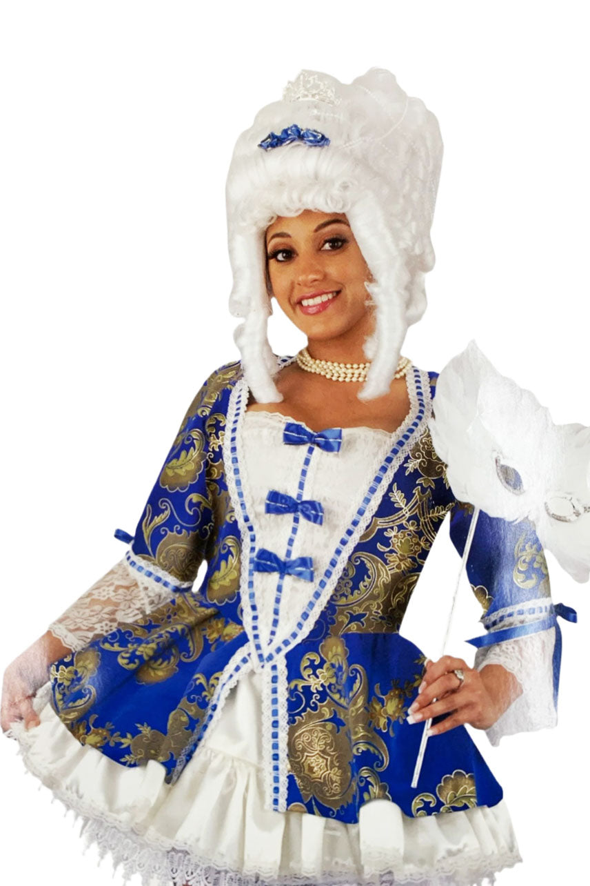 Parfaite pour un shooting photo ou un événement à thème, cette robe s’accorde avec une perruque XXL ou un masque vénitien. Pour une mise en scène complète, consultez notre collection de perruques et accentuez votre allure royale.