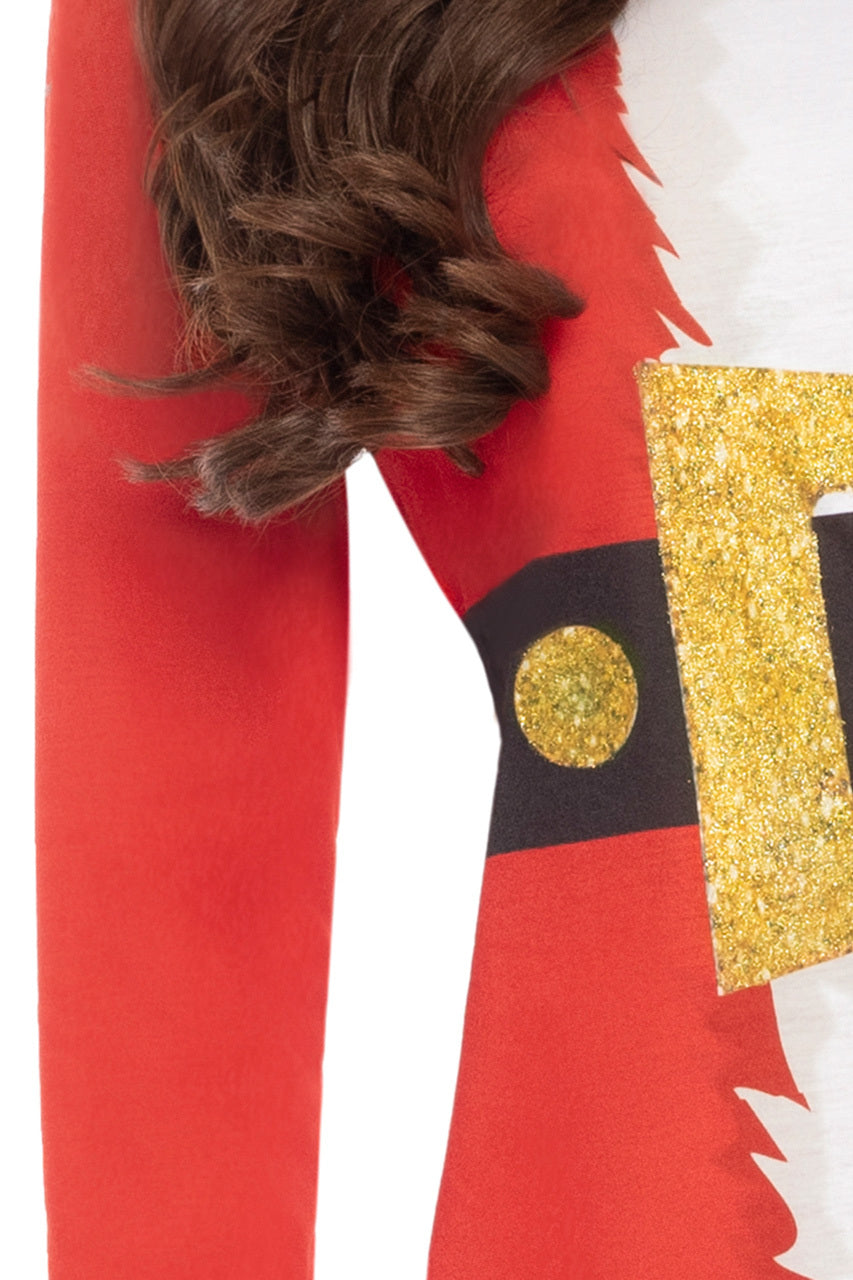 Chaleureuse et originale, la robe t-shirt mère Noël rouge allie confort et esprit festif pour la saison hivernale.