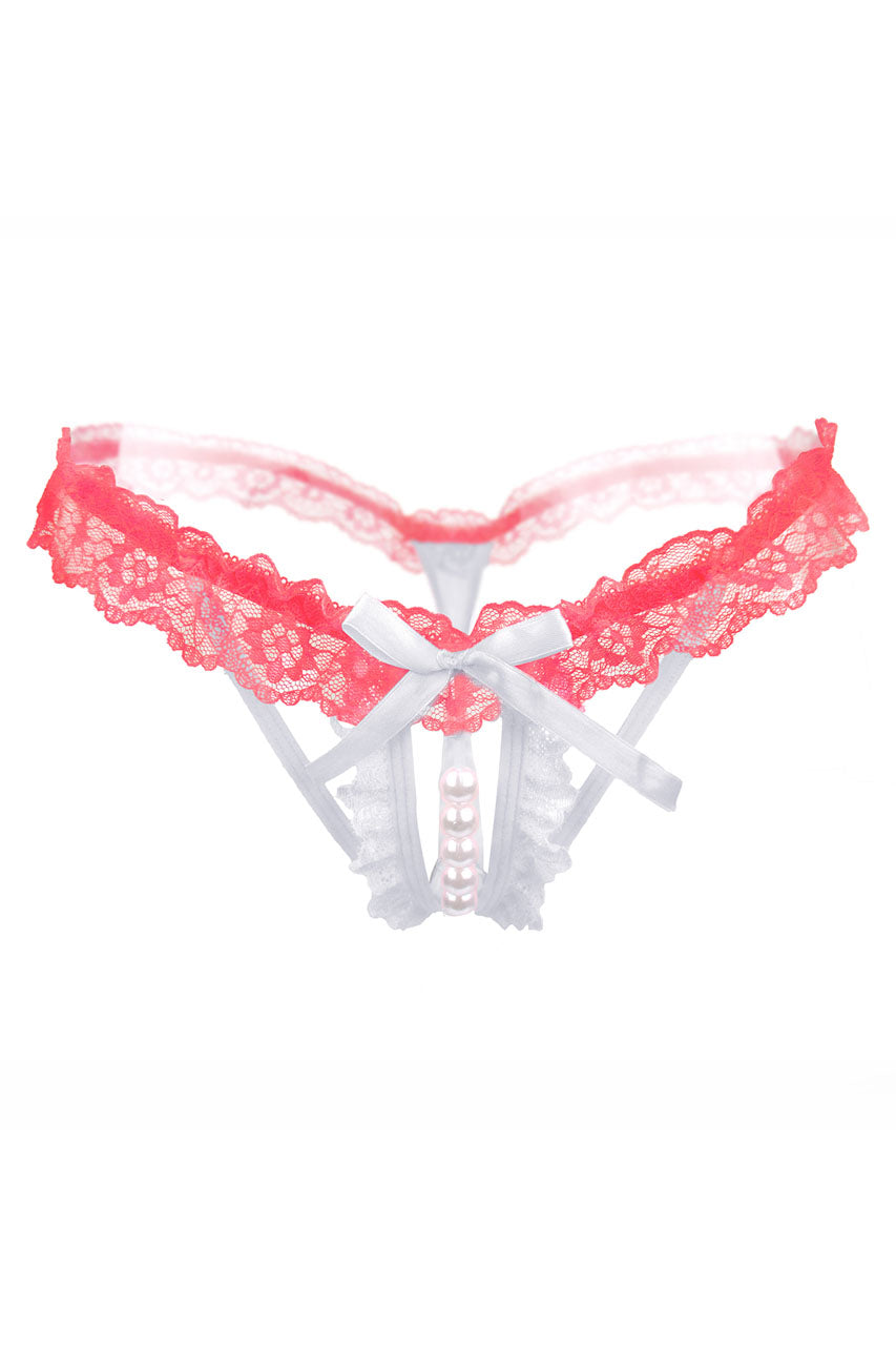 Caractéristiques du String dentelle volantée et perles