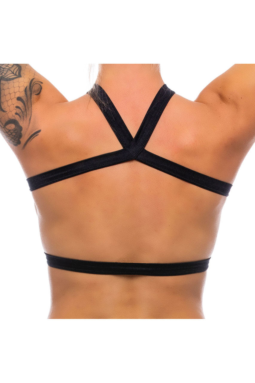 Le top cage croisé séduction met en valeur la silhouette grâce à son jeu de fines lanières entrelacées et ses découpes stratégiques. Il s’attache autour du cou pour un effet harnais ajusté et assure un maintien léger et confortable.